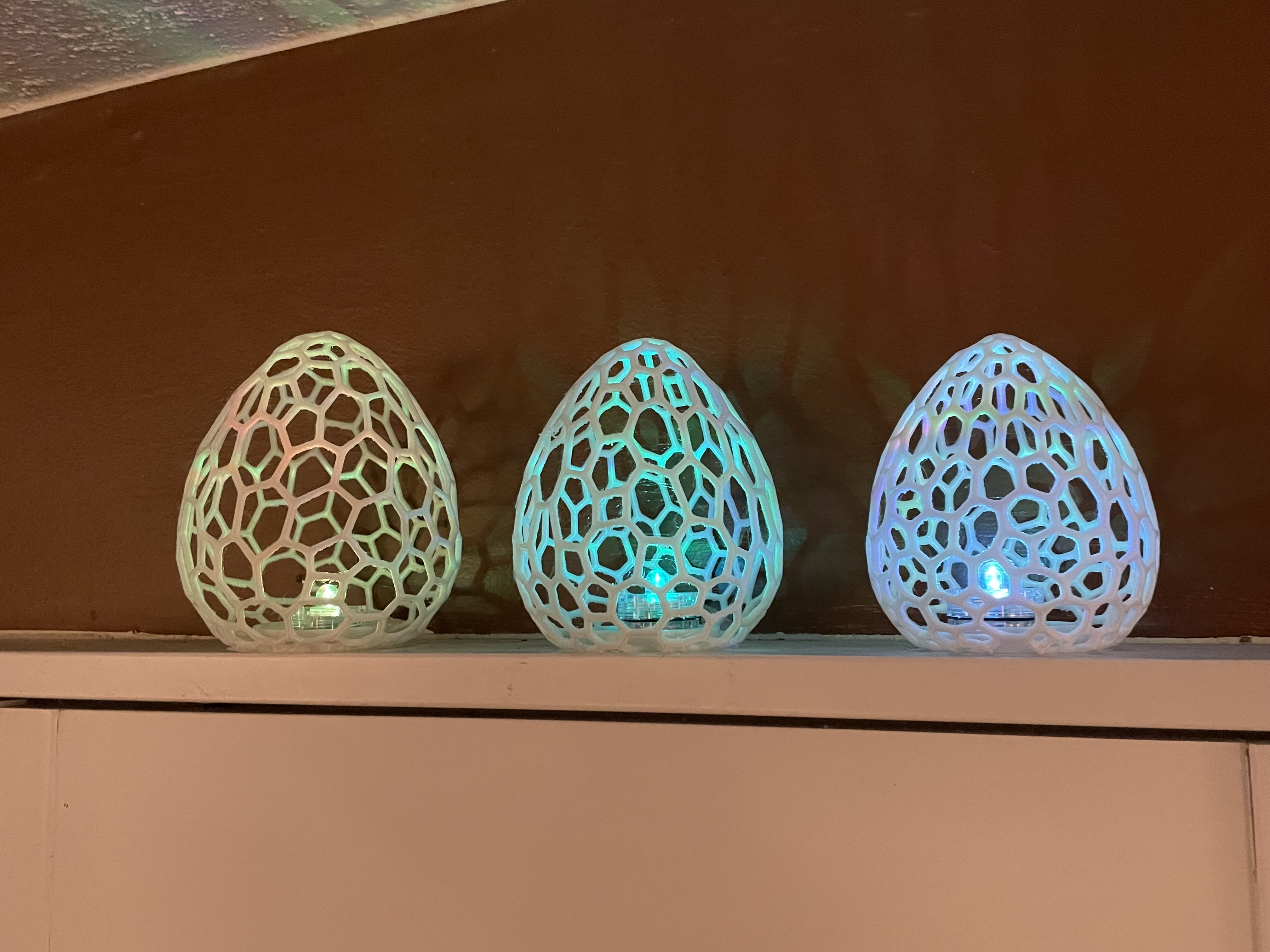 Một bộ sưu tập gồm ba quả trứng trang trí. Đáy có vít cho phép bạn đặt nến trà LED để tạo hiệu ứng đặc biệt.