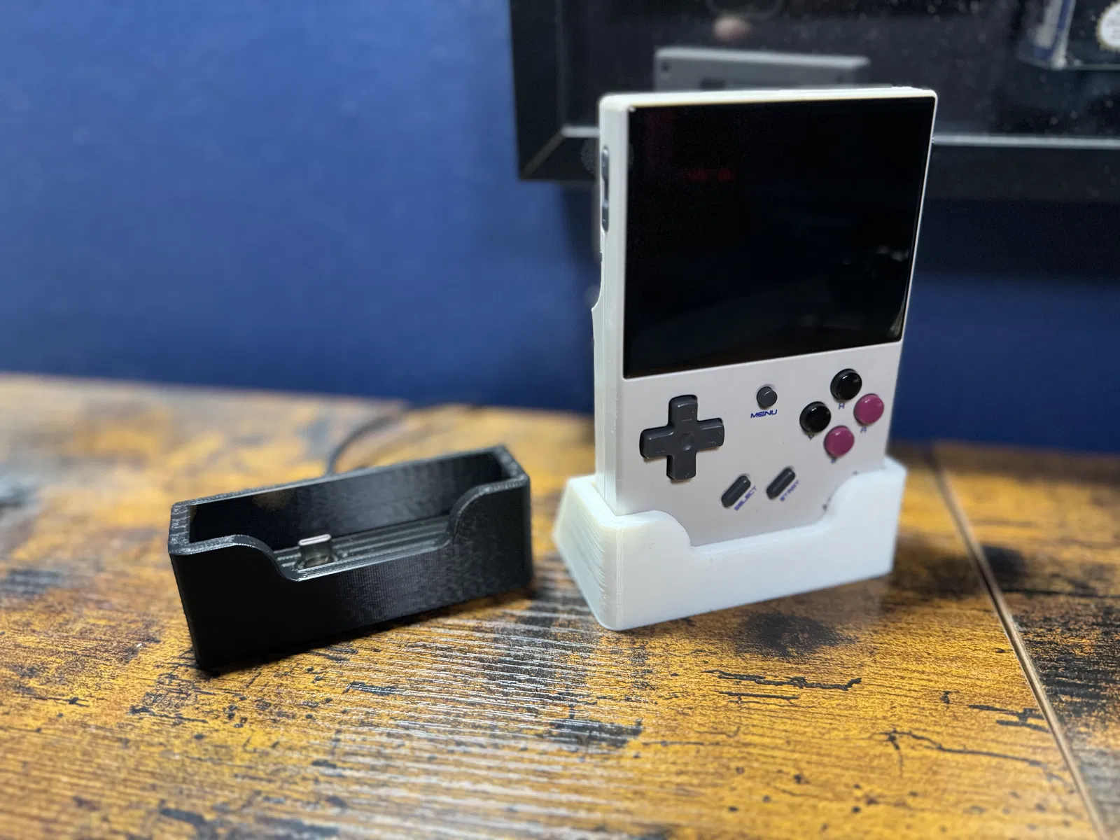 Đế sạc trưng bày tiện lợi cho máy RG35XX và RG35XX Plus, giúp máy luôn sẵn sàng chiến game. Có tùy chọn mua chân đế cao su, cáp sạc hoặc sản phẩm hoàn chỉnh trên Etsy.