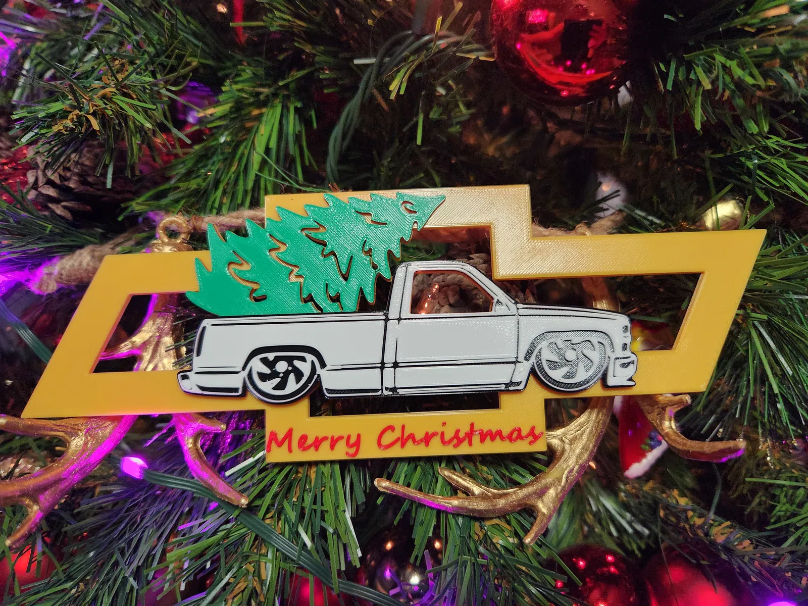 Đồ trang trí Giáng sinh (Xe Chevrolet OBS). Món đồ trang trí Giáng sinh nhỏ xinh, có thể in nhiều màu sắc khác nhau. Hoàn hảo cho mùa lễ hội để thể hiện tinh thần Giáng sinh và tình yêu của bạn dành cho xe tải cổ điển.