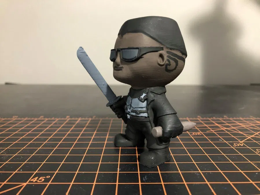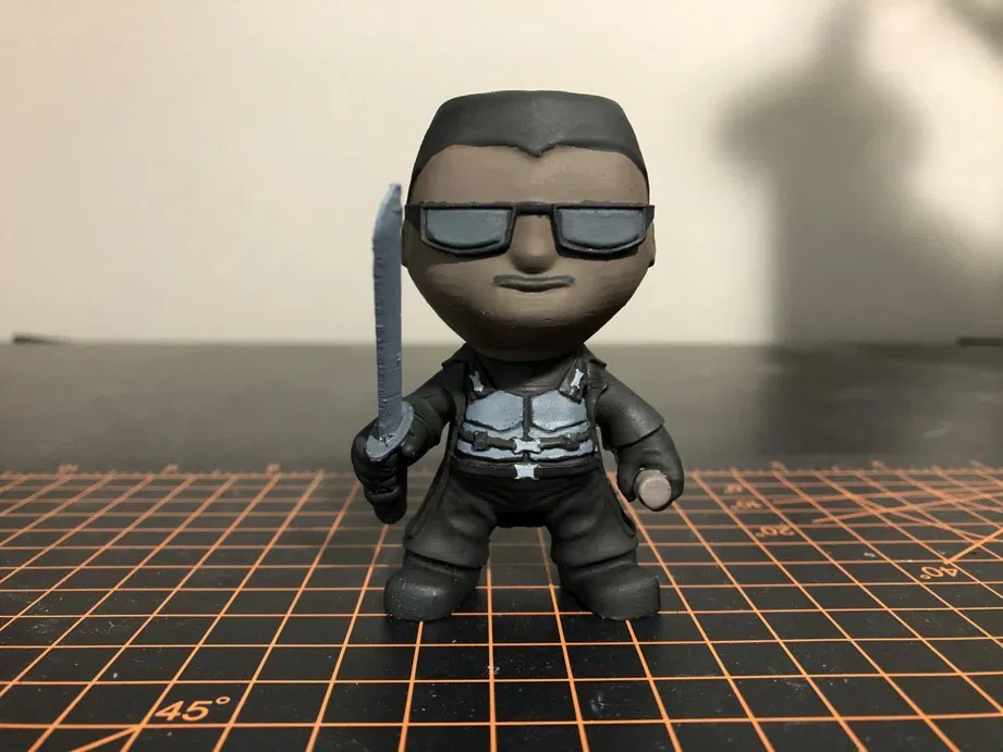 Mô hình Blade Mini, lấy cảm hứng từ nhân vật Blade huyền thoại. Mô hình này là một khối duy nhất, cực kỳ thích hợp để sưu tầm cùng với các nhân vật Marvel và DC khác. Rất hợp cho anh em fan Marvel.