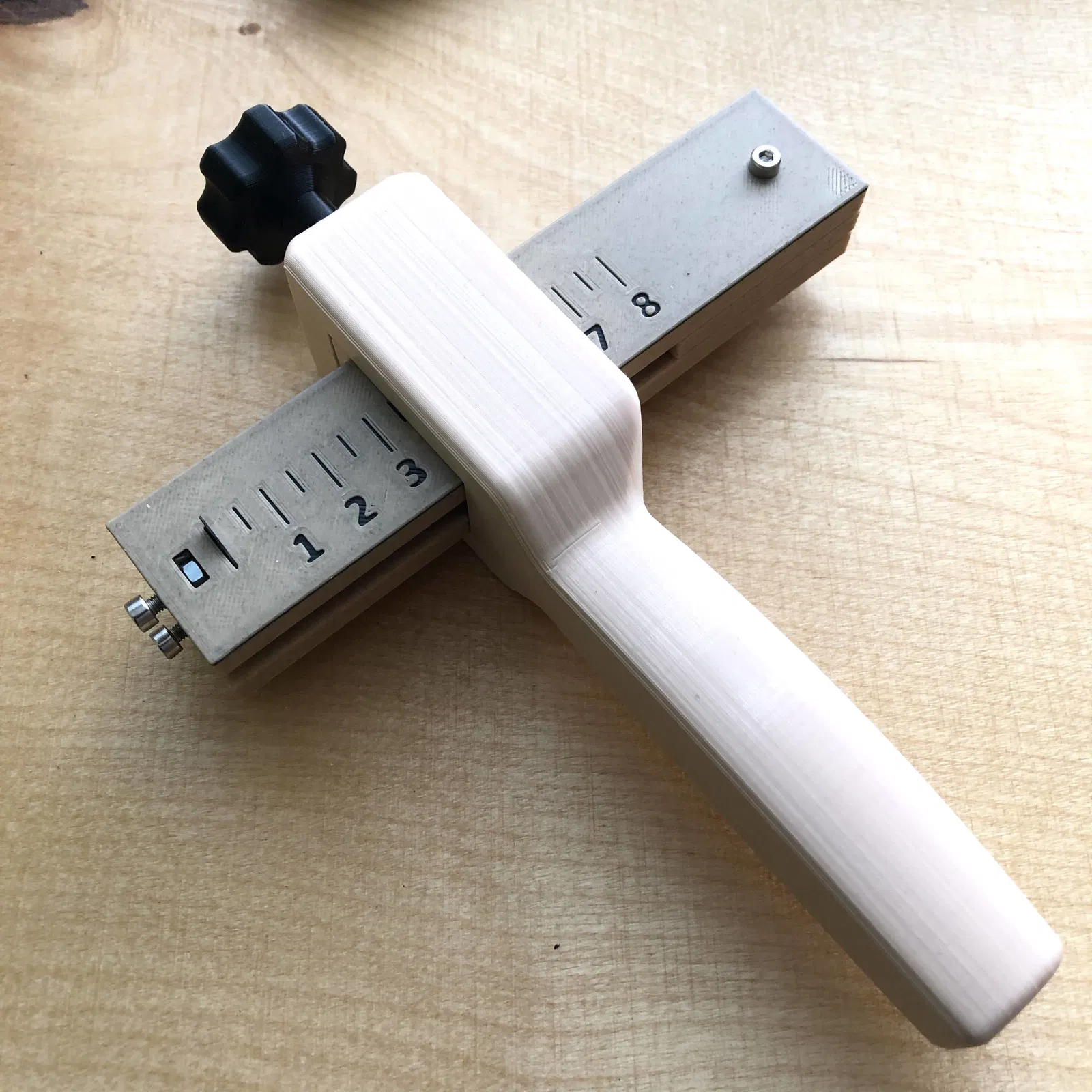 Đây là phiên bản in 3D của dụng cụ cắt dây da điều chỉnh được cổ điển. Độ dày da tối đa khoảng 5.5mm.