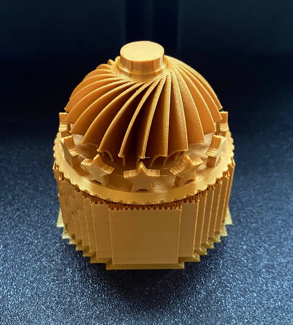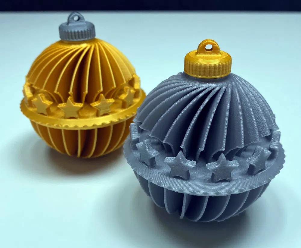 Cái quả châu 65mm trang trí cây thông Noel hình TRỤ SPHERE này có 12 ngôi sao nằm giữa các cánh được tạo hình đẹp mắt. Rất dễ dàng để thay đổi kích thước & in ấn. Mình gợi ý nên dùng sợi kim loại để có vẻ ngoài đẹp hơn nữa như hình ảnh bên dưới nha. Cái nắp này làm cho tất cả các đồ trang trí XMAS có đỉnh 14mm. Chỉ cần dán nó lên quả châu là xong cho mùa XMAS luôn. Mình khuyên bạn nên in quả châu có hỗ trợ giá đỡ. Nếu bạn cần các kích thước khác cho cây XMAS của mình thì cứ việc thay đổi kích thước quả châu & nắp tùy thích nha. Cứ tự nhiên xem các MÔ HÌNH NOEL KHÁC của mình nha. Cảm ơn nhiều! Chúc vui vẻ & MERRY XMAS! Vật liệu: PLA Độ dày lớp: 0.2mm hoặc tốt hơn Ruột: 0-10% Giá đỡ: Có