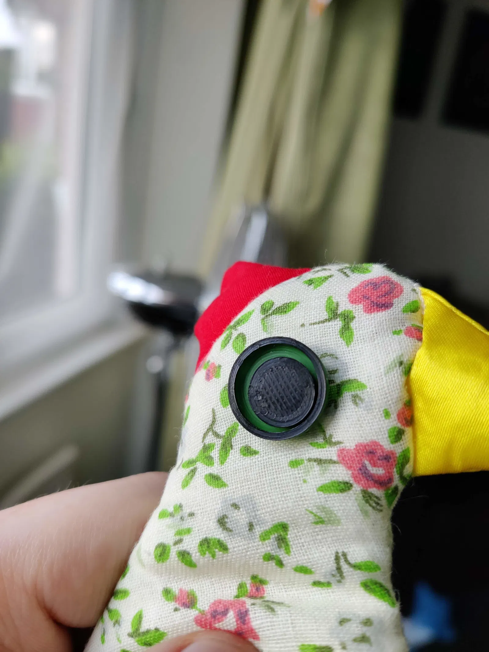 Đây là nút mắt lồi in liền, có lỗ nhỏ để có thể may lên vải. Phiên bản này được thiết kế lại nhỏ gọn, dễ in hơn bản gốc, với khoảng hở được tùy chỉnh cho từng máy in.