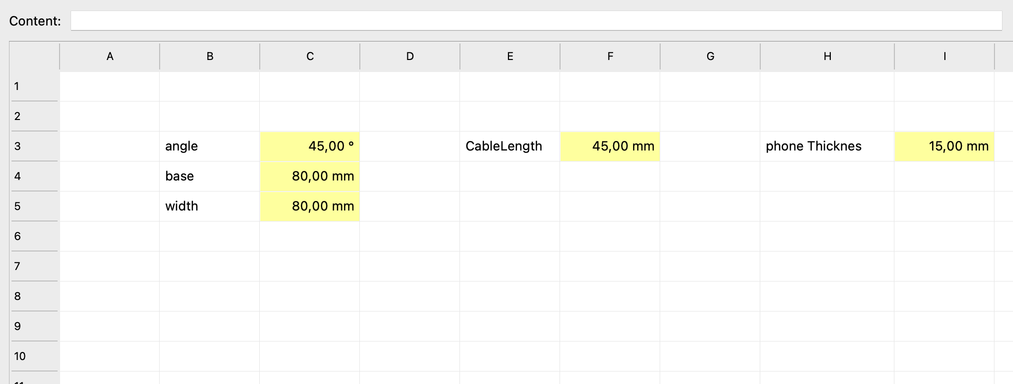 Kệ điện thoại tham số có thể chỉnh sửa trong FreeCad. Có các file STL cho 15, 39, 45, 60 độ.