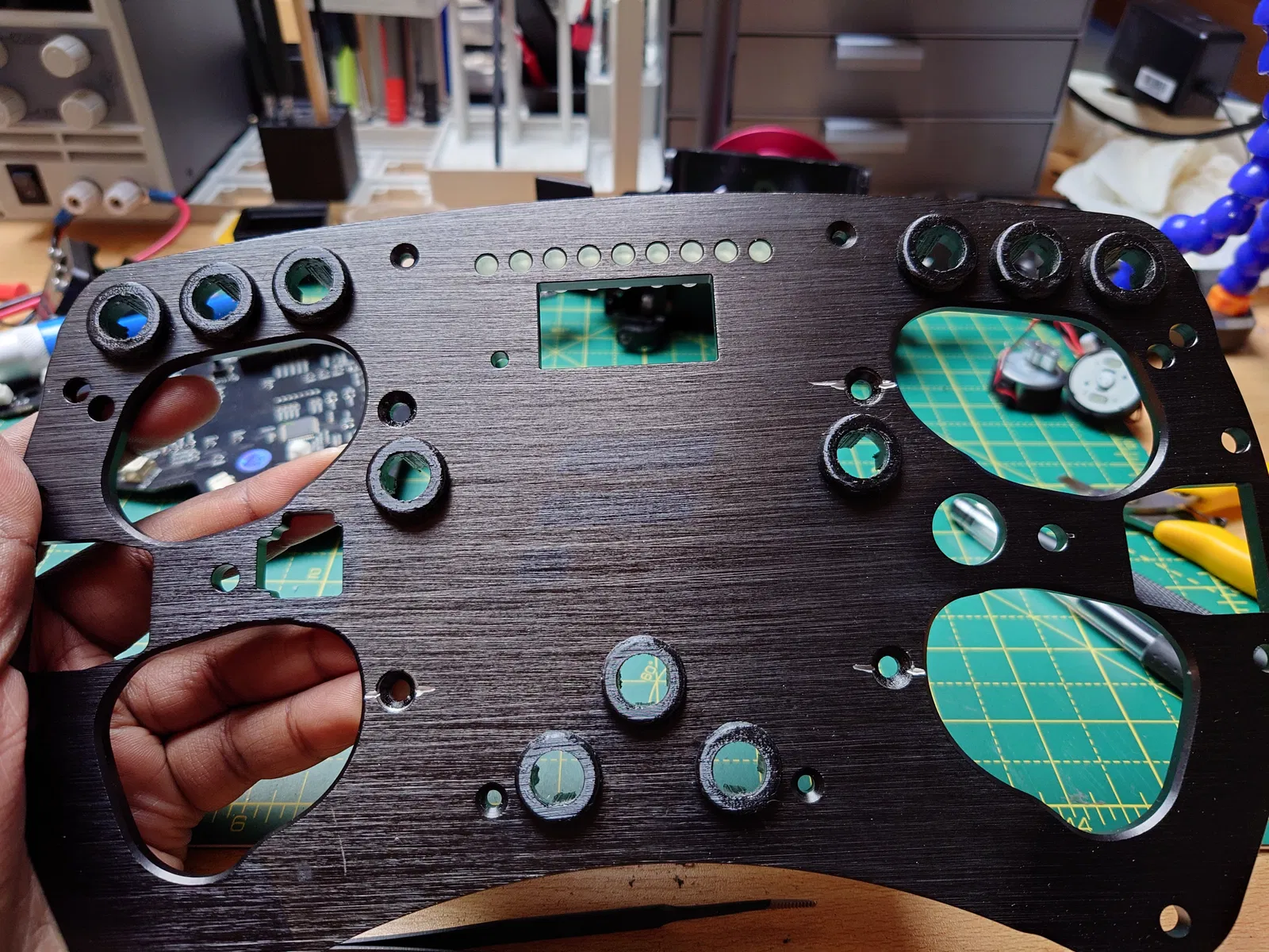 Giá thì hơi chát, nhưng mà tui tự thiết kế cái kẹp nút cho mấy dòng vô lăng Fanatec Formula, kể cả loại cũ lẫn loại mới esports. Khuyên anh em nên in nằm nghiêng để tránh gãy kẹp và chà nhám sơ bên trong cho vừa.