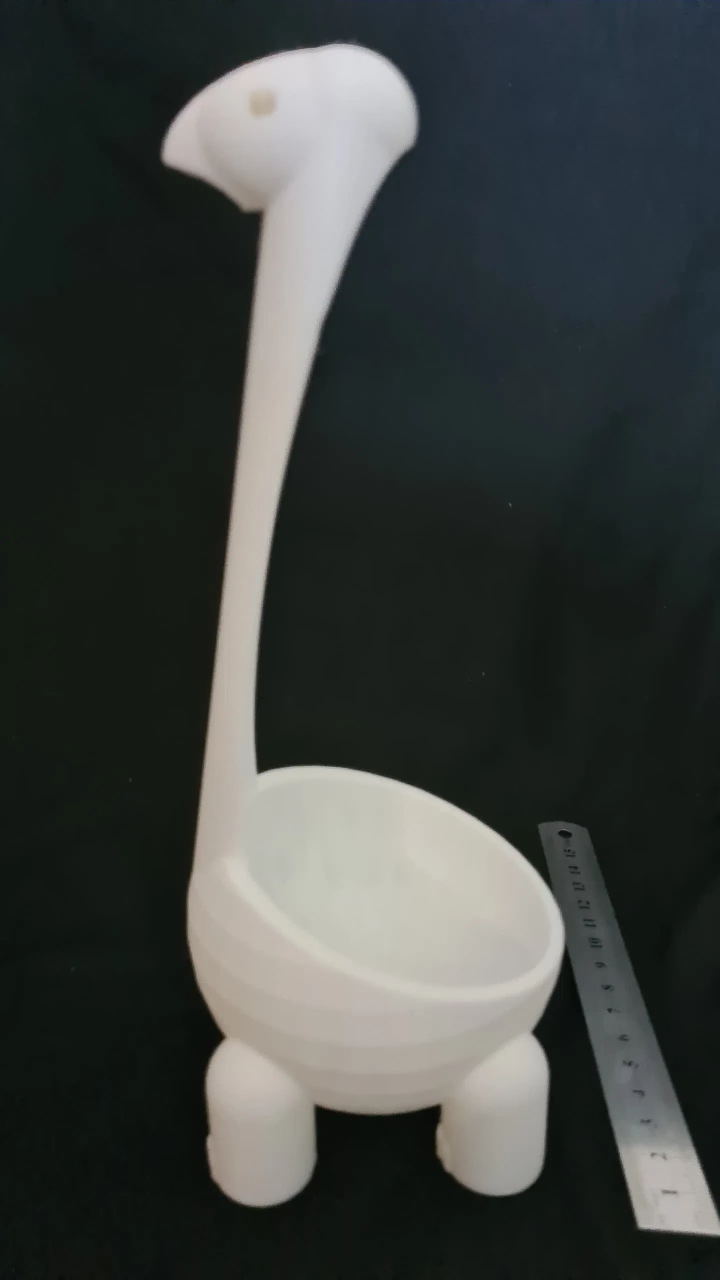 CẬP NHẬT: Mình đã in ra và kích thước đạt như mong đợi (cao 250mm). Cái dino ladle gốc có phần cổ hơi ọp ẹp và rung nhẹ khi có thức ăn trong lòng muỗng. Mình đã làm phần cổ dày hơn để gia cố, cộng thêm chỗ tỳ ngón tay cái hữu ích khi múc súp hoặc sốt để kiểm soát tốt hơn.