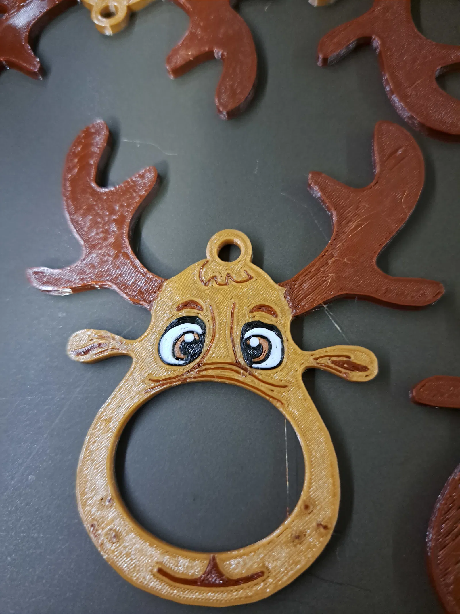 Tuần lộc Lindor Lindt được sơn màu này có thêm vài chi tiết mắt cực kỳ dễ thương. Người dùng đã in mẫu này bằng đầu phun .25 và chia sẻ kinh nghiệm chọn màu nâu chocolate cho phần gạc và các chi tiết phụ, cùng với màu trắng đen cho mắt.