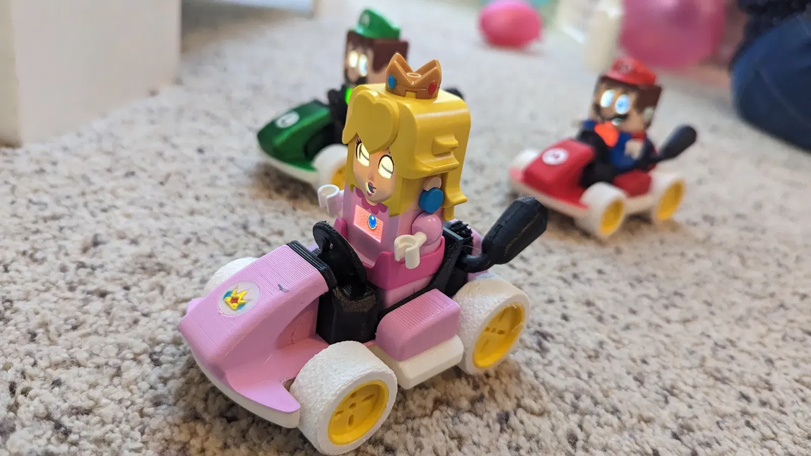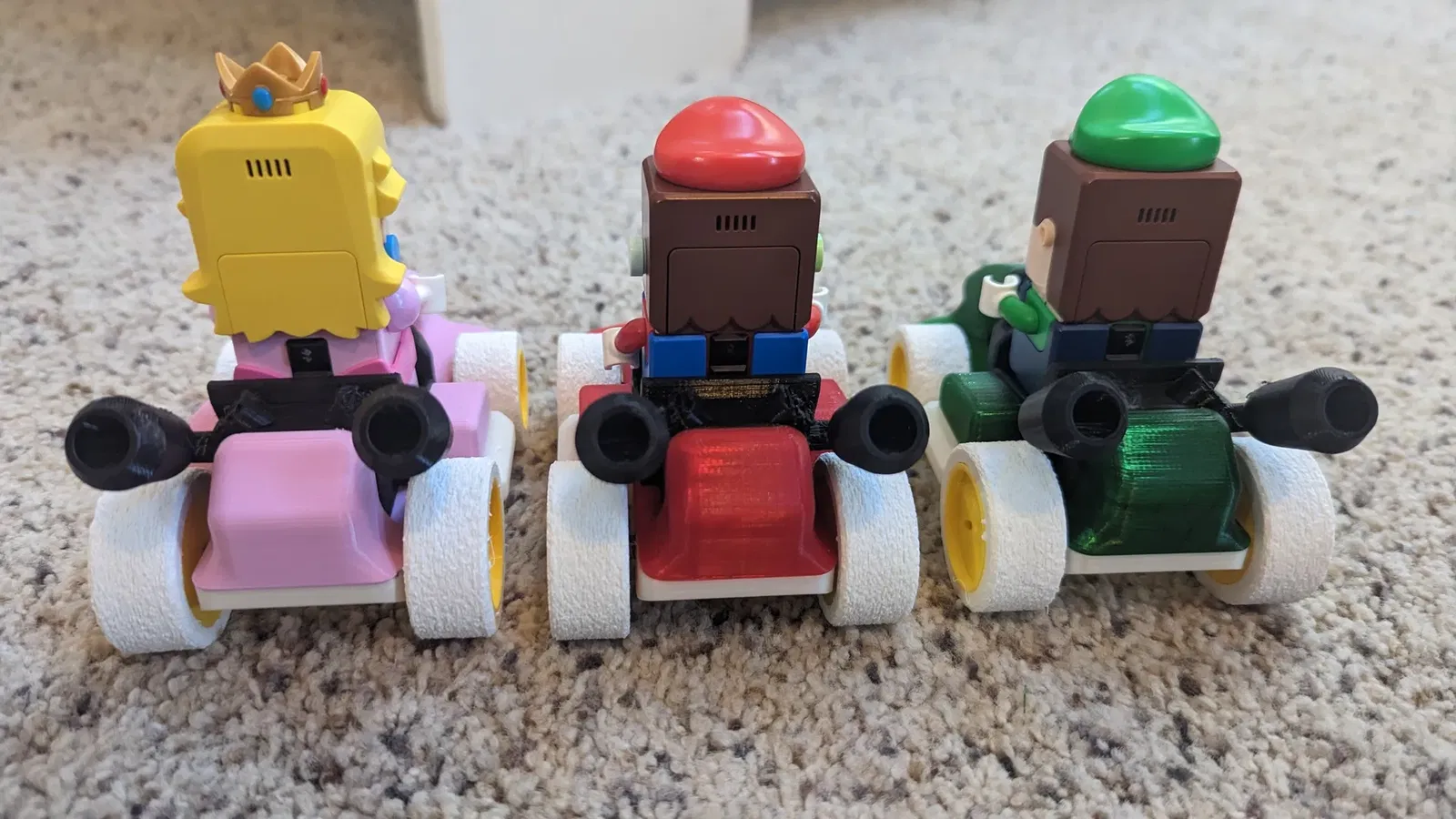 Biểu tượng Mario, Luigi và Peach dành cho Mario Karts. Bạn có thể dễ dàng cắt ra một chỗ để các logo vừa với tệp MARIO_KART_BODY_2.stl gốc.