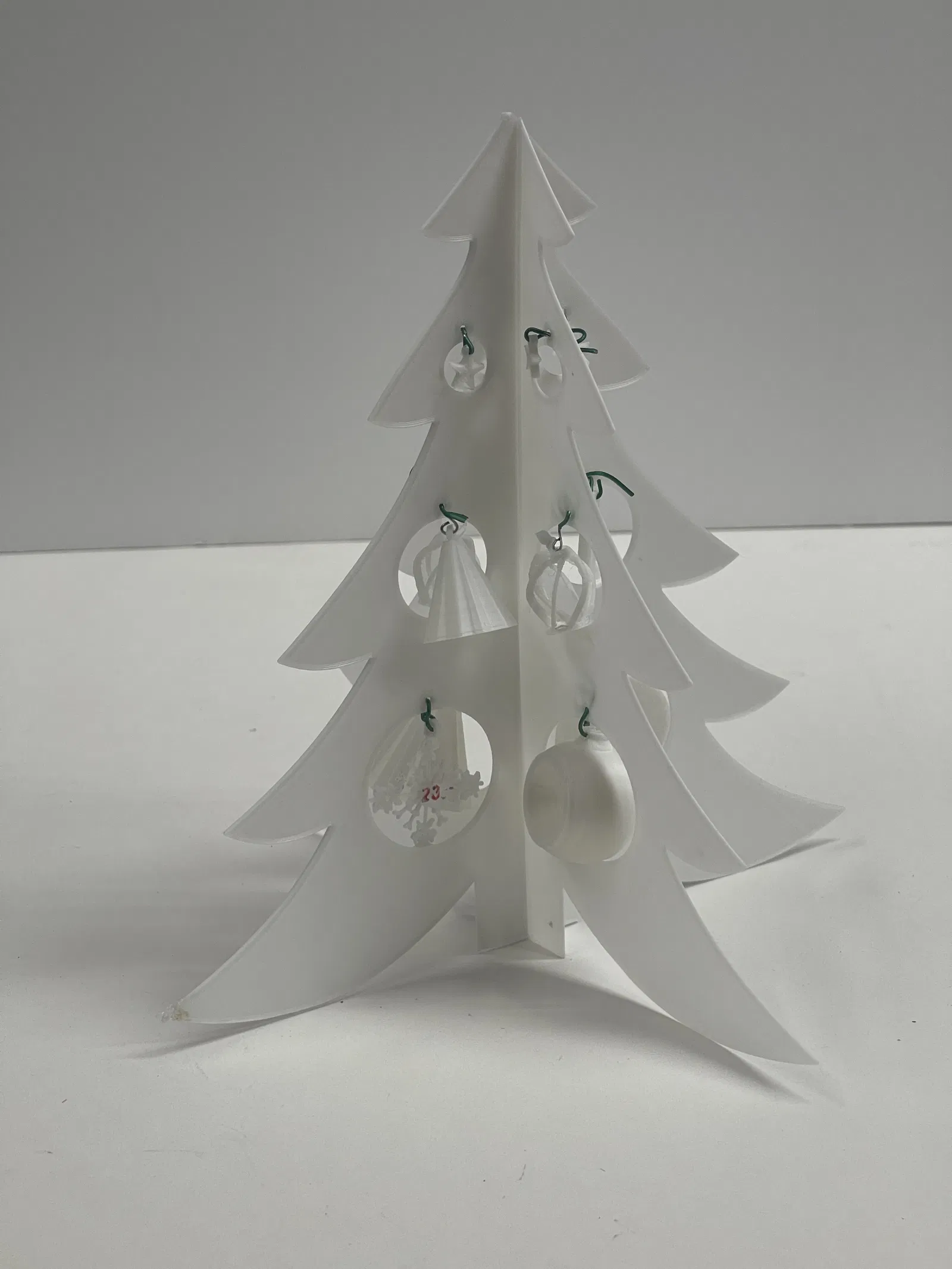 In 2 nửa rồi ghép lại là có cây thông Noel tự đứng được luôn nha! Mấy cái lỗ trên cây là để bạn nhét mấy món đồ trang trí nhỏ nhỏ vô đó, tha hồ mà xúng xính!