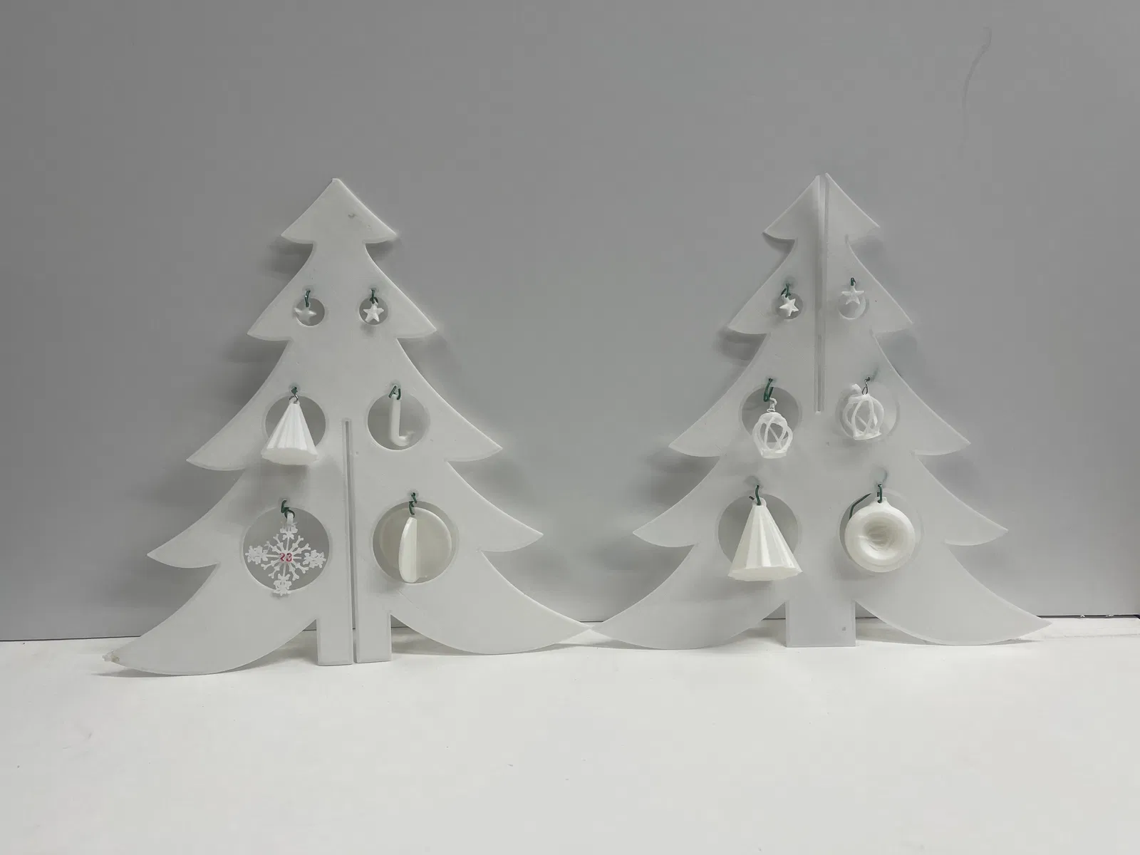 Hai nửa của cây thông Noel sẽ trượt vào nhau và giúp cây đứng vững. Bạn có thể dùng dây treo để treo những món đồ trang trí nhỏ vào các lỗ trên cây.