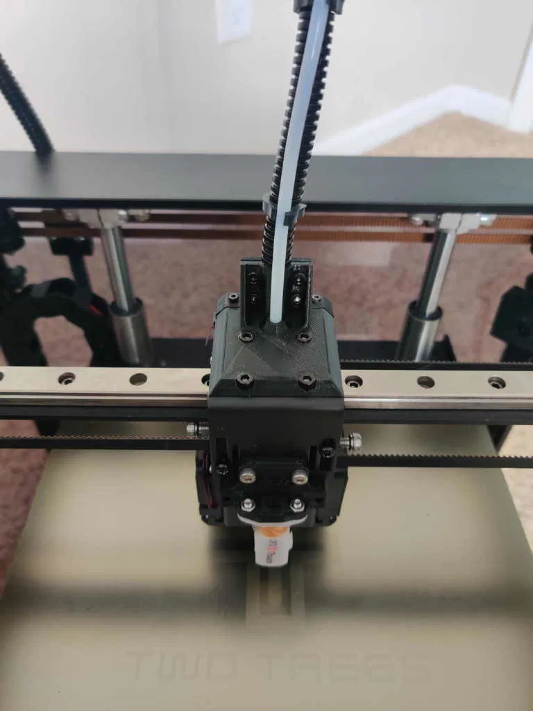 Ốp lưng hotend này là bản nâng cấp ngoại hình cho dòng máy Sapphire của Two Trees, giúp che đi dây điện và tạo chỗ tựa. Đảm bảo lắp miếng đệm để trục Y có thể homing.