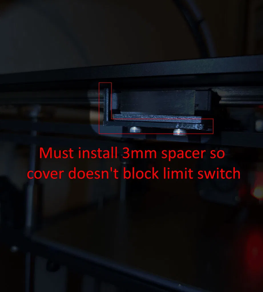 Nhớ gắn cái miếng đệm nha, cái ốp này sẽ cản trở trục Y của bạn homing vì cái ốp sau sẽ làm máy in của bạn không chạm vào công tắc giới hạn đó