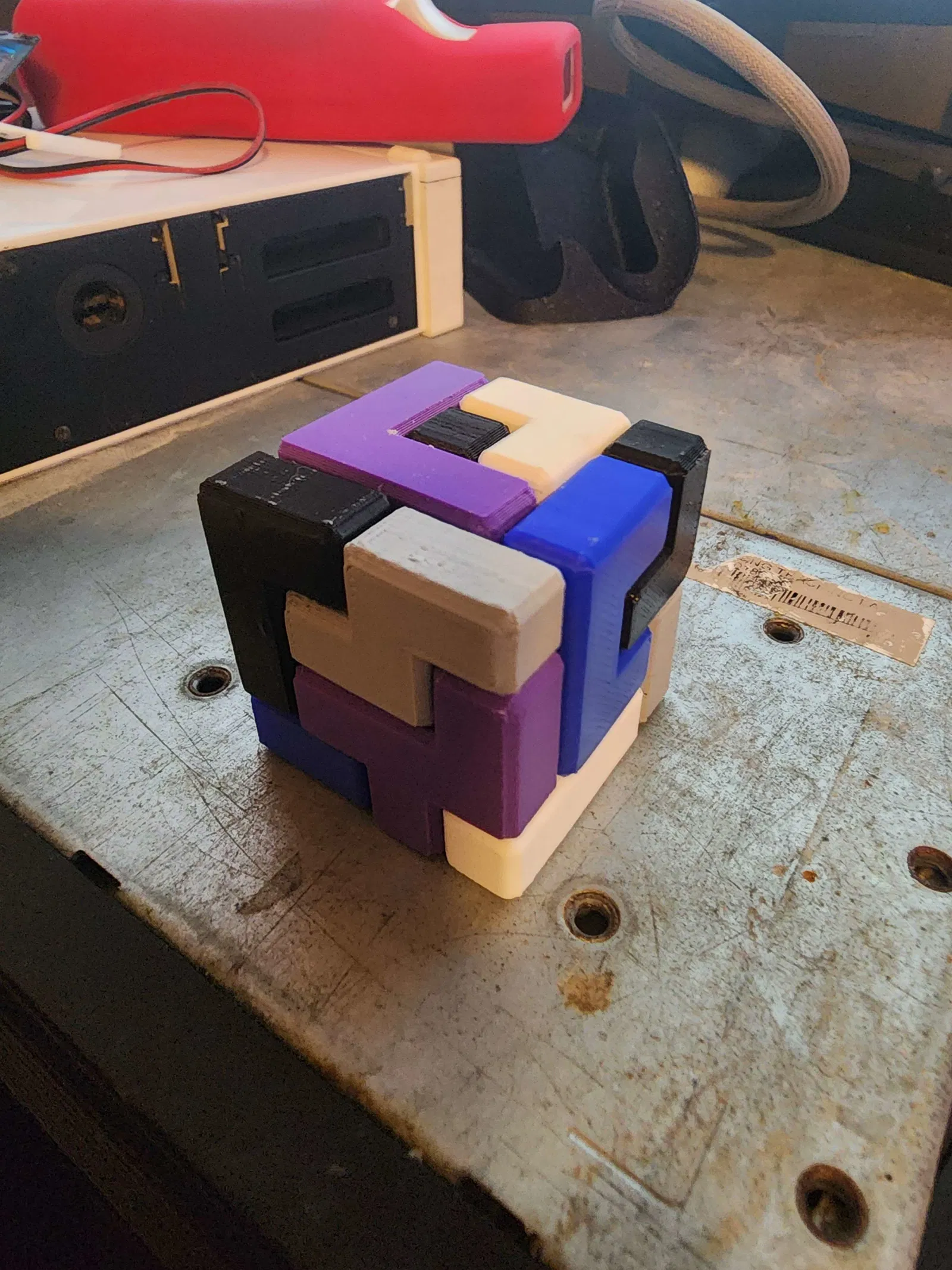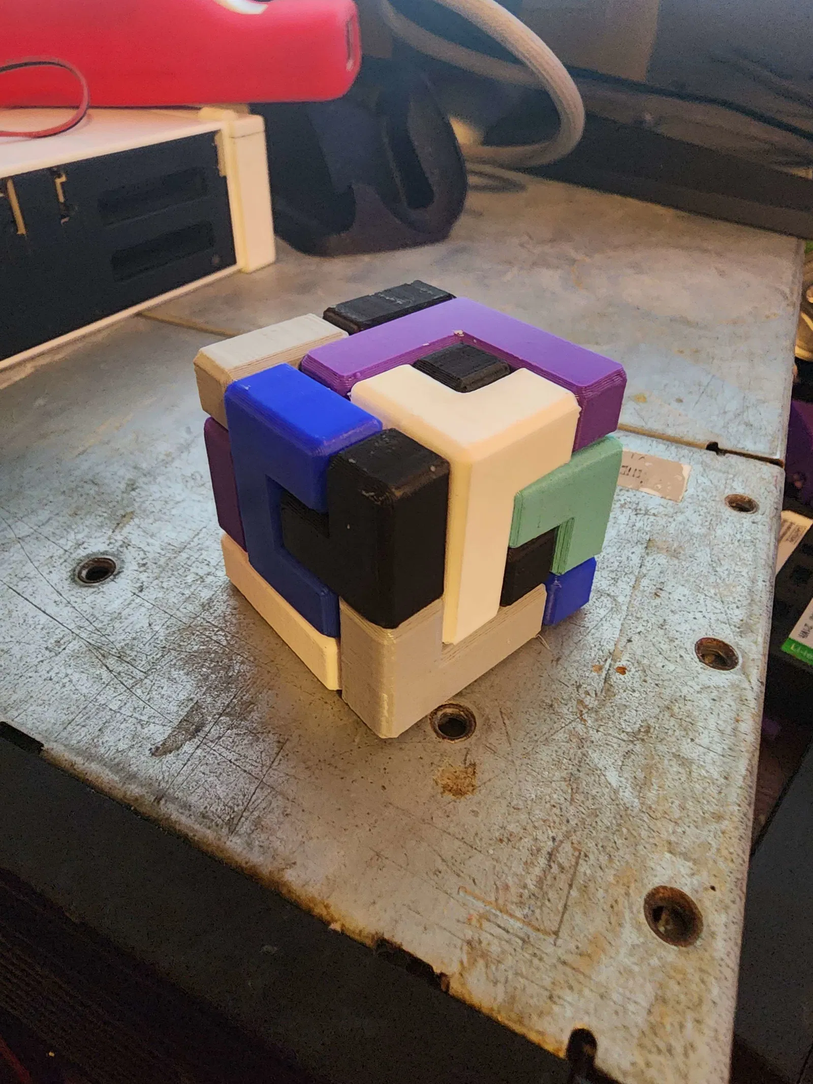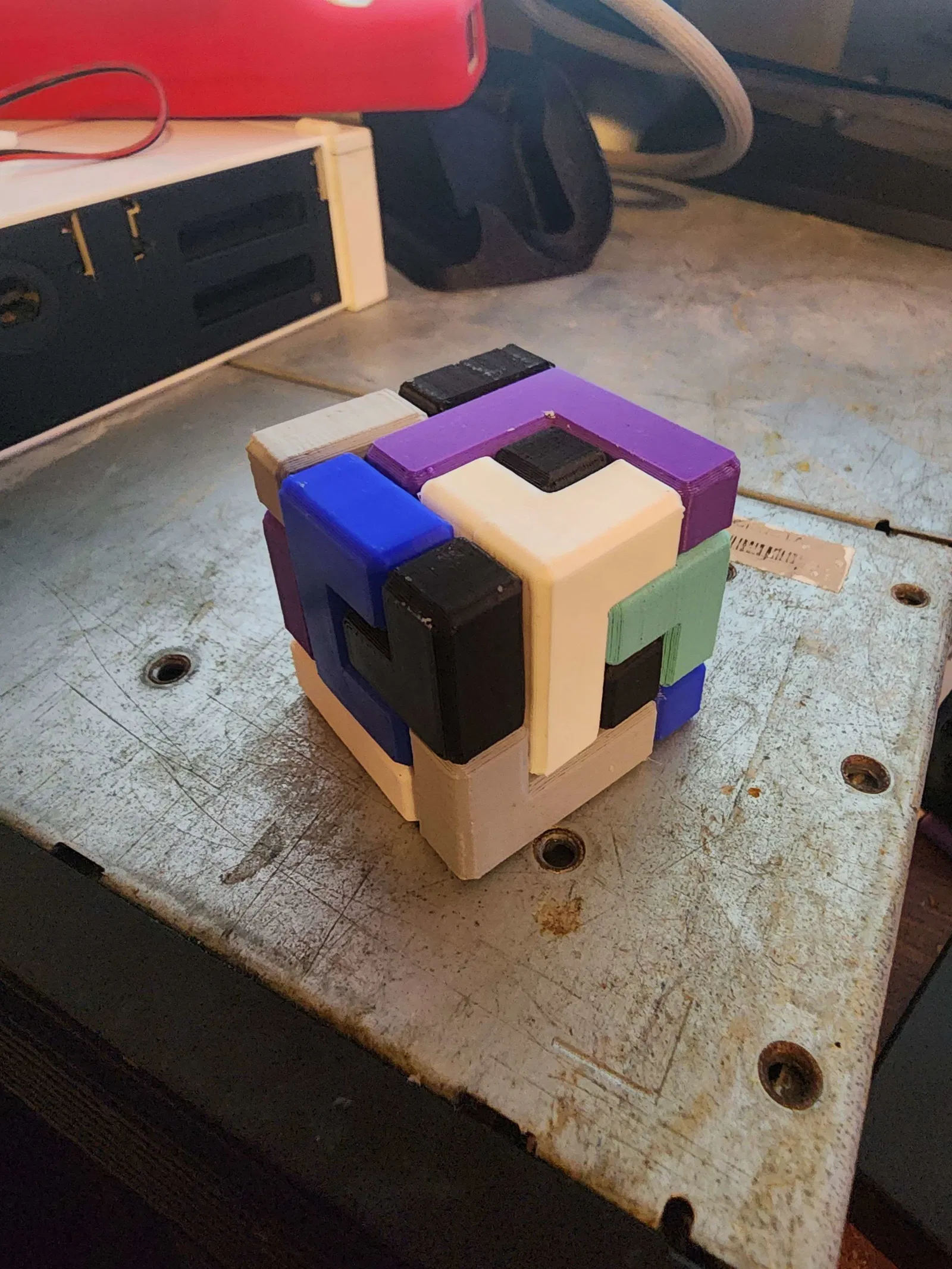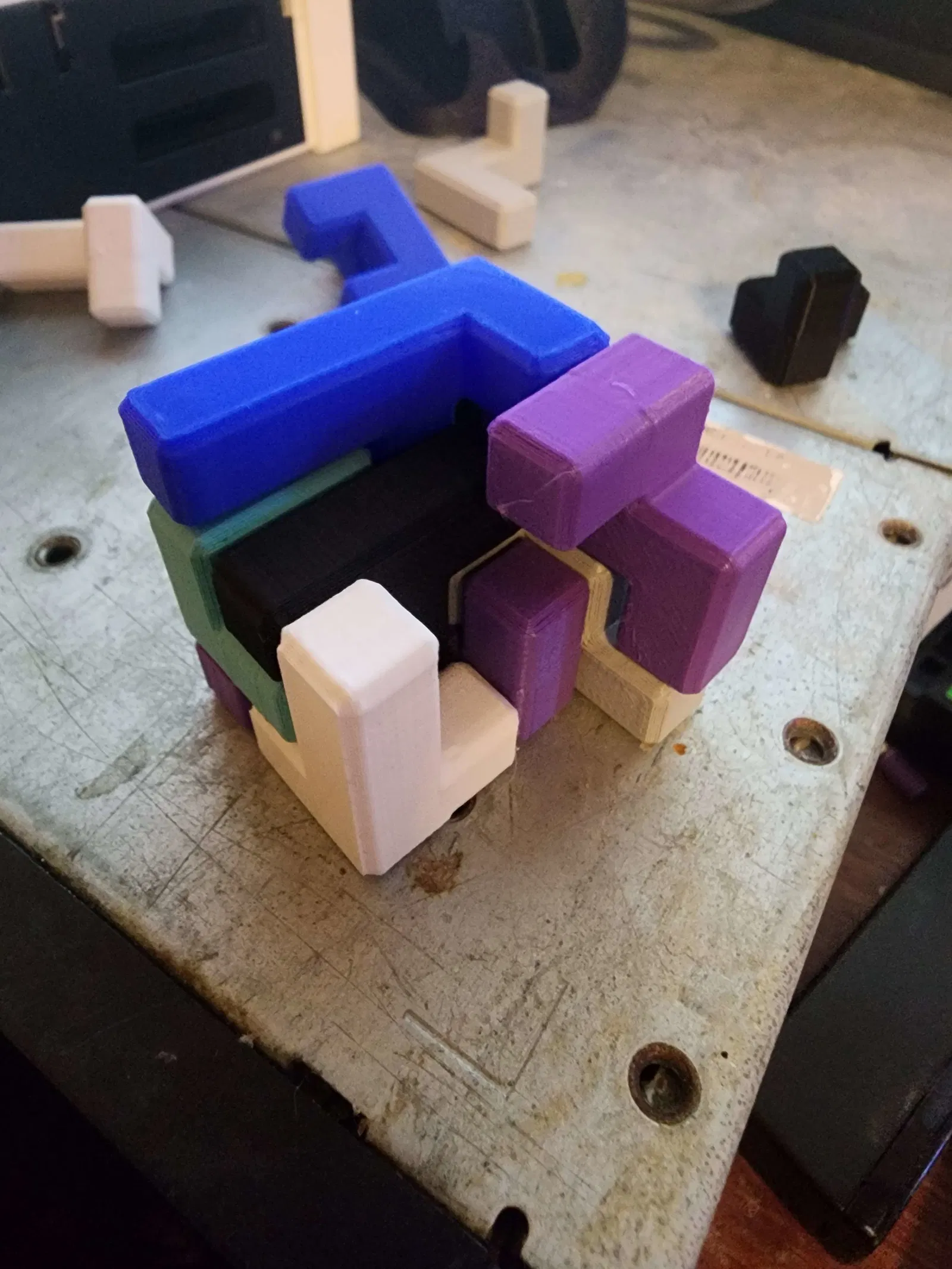 Cái này cũng là một dạng đồ chơi giải đố giống mấy cái khác của mình, nhưng lần này các mảnh ghép được thiết kế theo khối lập phương 4x4x4, làm cho trò chơi trở nên cực kỳ khó. Ngay cả khi có lời giải ngay trước mắt, mình cũng vật lộn để giải được cái này. Một món quà tuyệt vời cho những người thích giải đố trong mùa lễ này. Tiếc là mình phải dùng một bộ phận trùng lặp được dán nhãn 6-19 và mình đã ghi chú để đảm bảo bạn in hai cái đó. Ngoài ra, mình khuyên bạn nên in bằng càng nhiều màu càng tốt và vui lòng tải lên bản in hoàn chỉnh. Mình đã đính kèm một vài hình ảnh để hỗ trợ lắp ráp phần bên trong của câu đố nếu bạn không thể tự mình tìm ra, chúng ở cuối. Chúc bạn chơi vui vẻ và có trách nhiệm nhé.