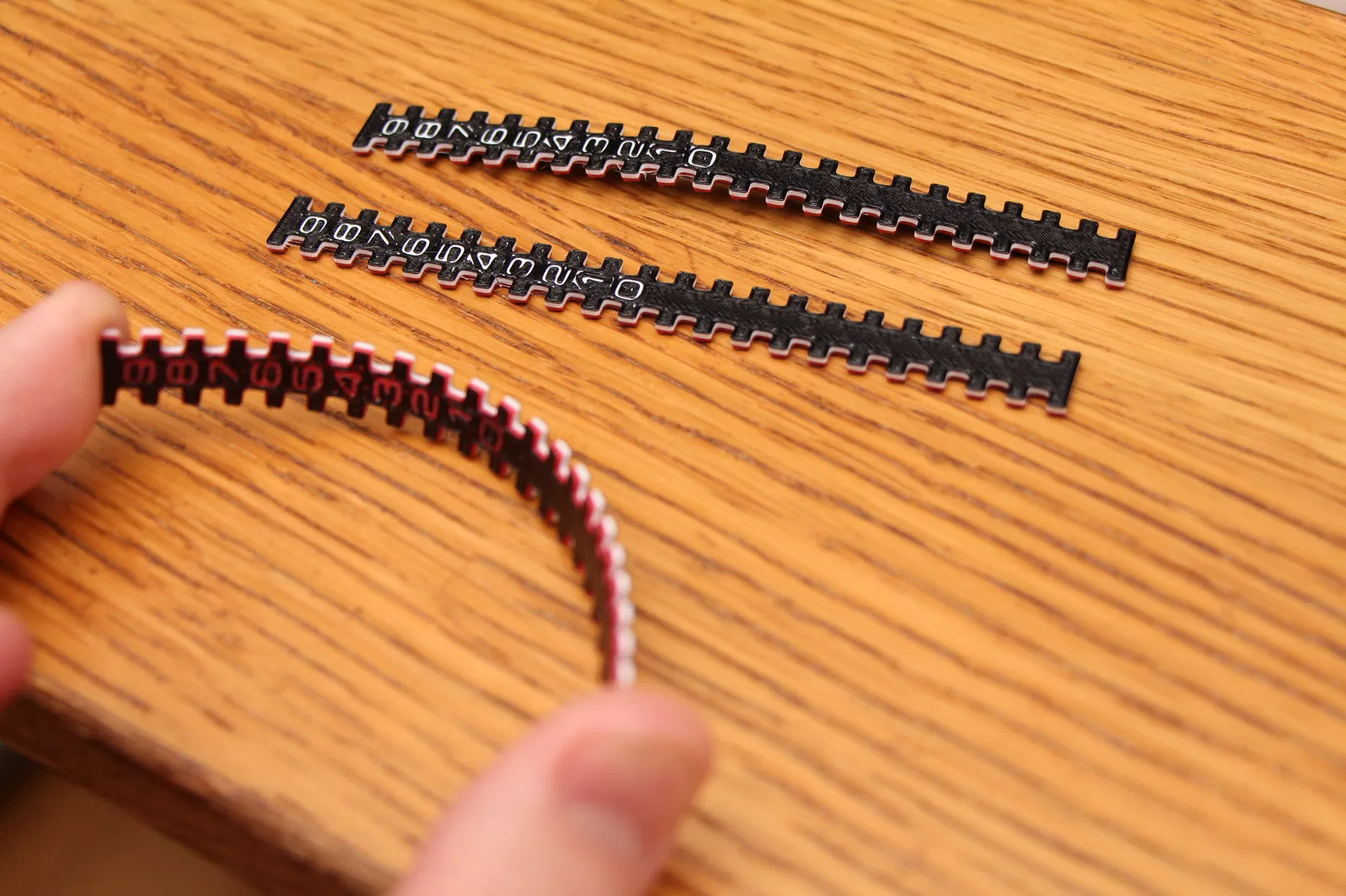 In 9 cái. Bạn có thể thay đổi màu theo nhiều cách khác nhau để có được giao diện mong muốn. Tôi đã thử làm hai màu với đen - đỏ - trắng - đen. Bằng cách đó, một mặt của thanh trượt có số màu trắng và mặt kia có số màu đỏ. Sự tương phản giữa đỏ và đen hơi khó đọc hơn nhưng bạn có thể làm những điều thú vị như nhóm các số có màu khác nhau.