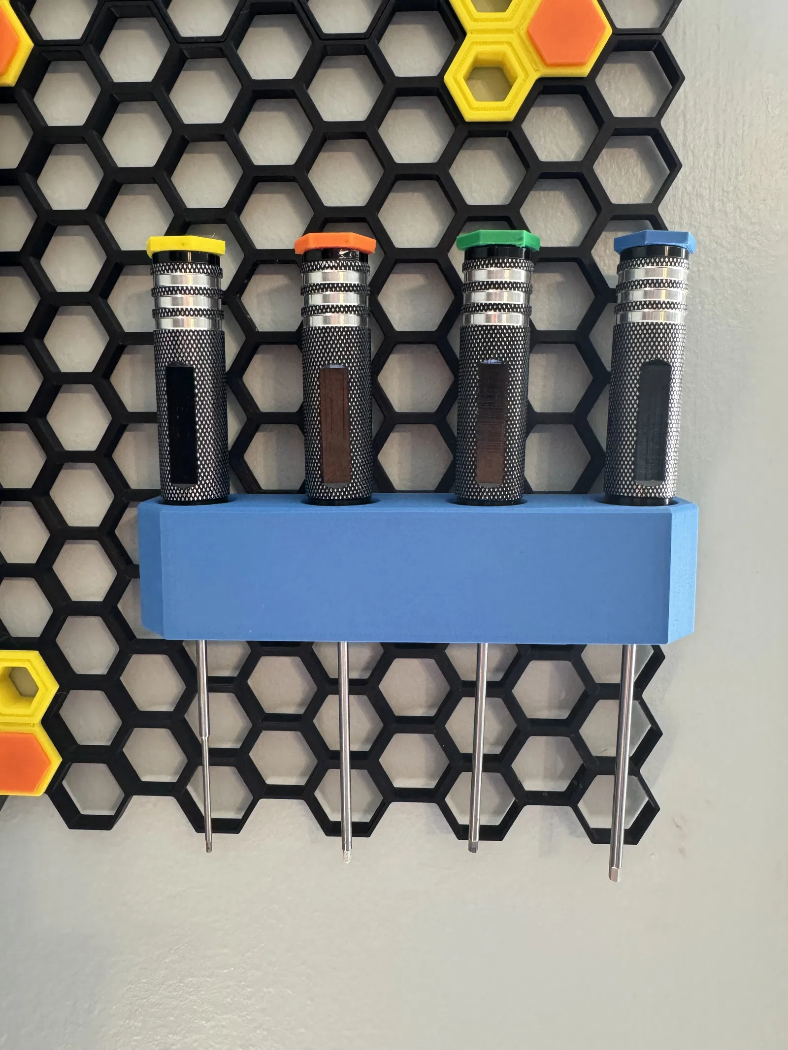 Giờ thì tui đã in mỗi cái nắp chụp đầu với một màu khác nhau, tui sẽ nhớ kiểu "tui cần cái màu xanh lá", còn cái nắp thì có hình lục giác nên nó không có còn lăn nữa.