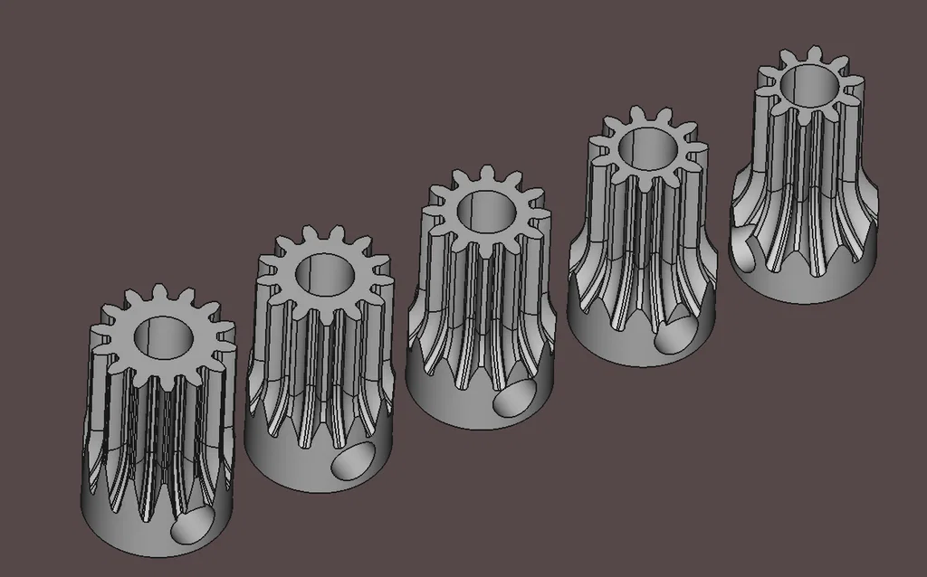 Bản CAD của vài cái motor và bánh răng ăn khớp với nhau với module 0.5: