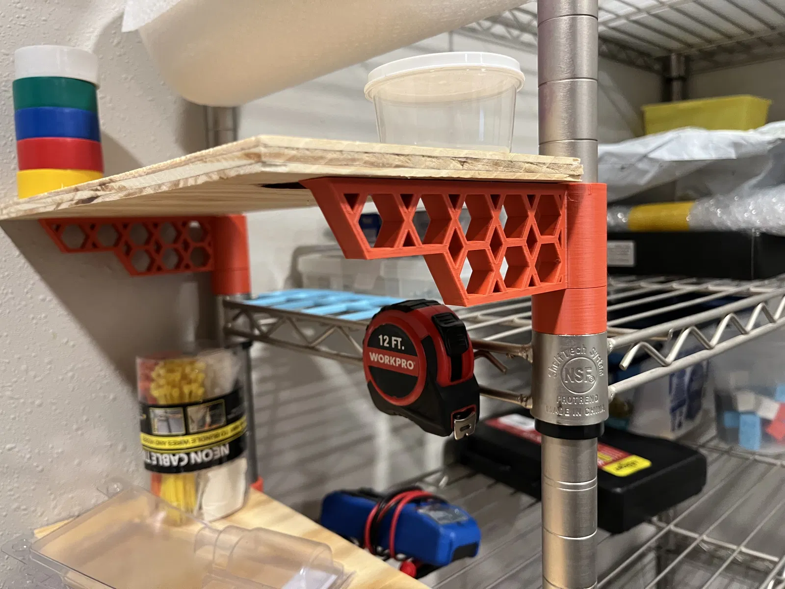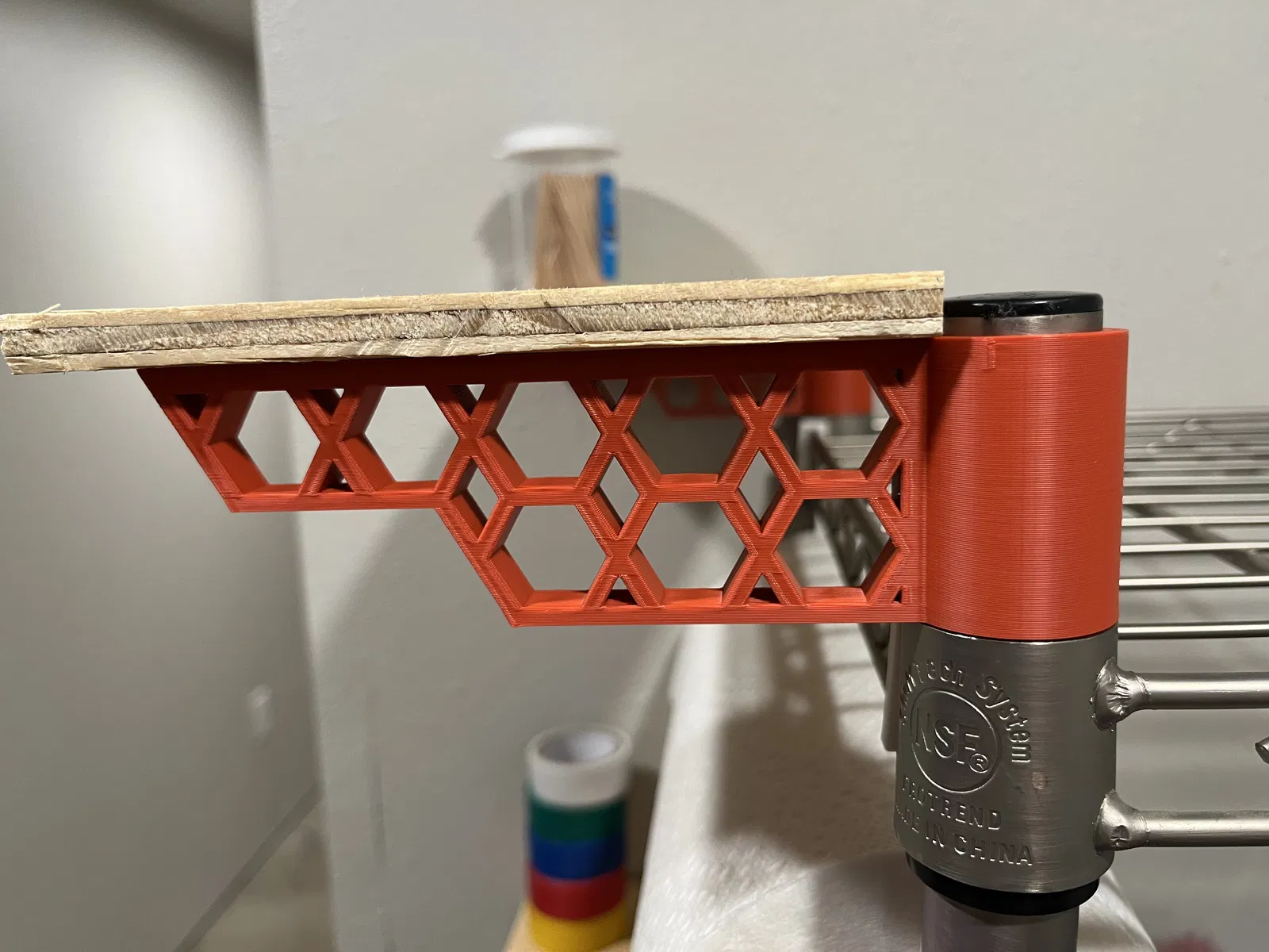 Một cái pát để gắn lên kệ sắt thông thường. Cần in hai cái, một cái thường và một cái xoay ngược. Tùy chỉnh cài đặt in như chiều cao lớp, ruột in, và bật "bridge settings" để có kết quả tốt nhất. Dùng để gắn kệ gỗ.