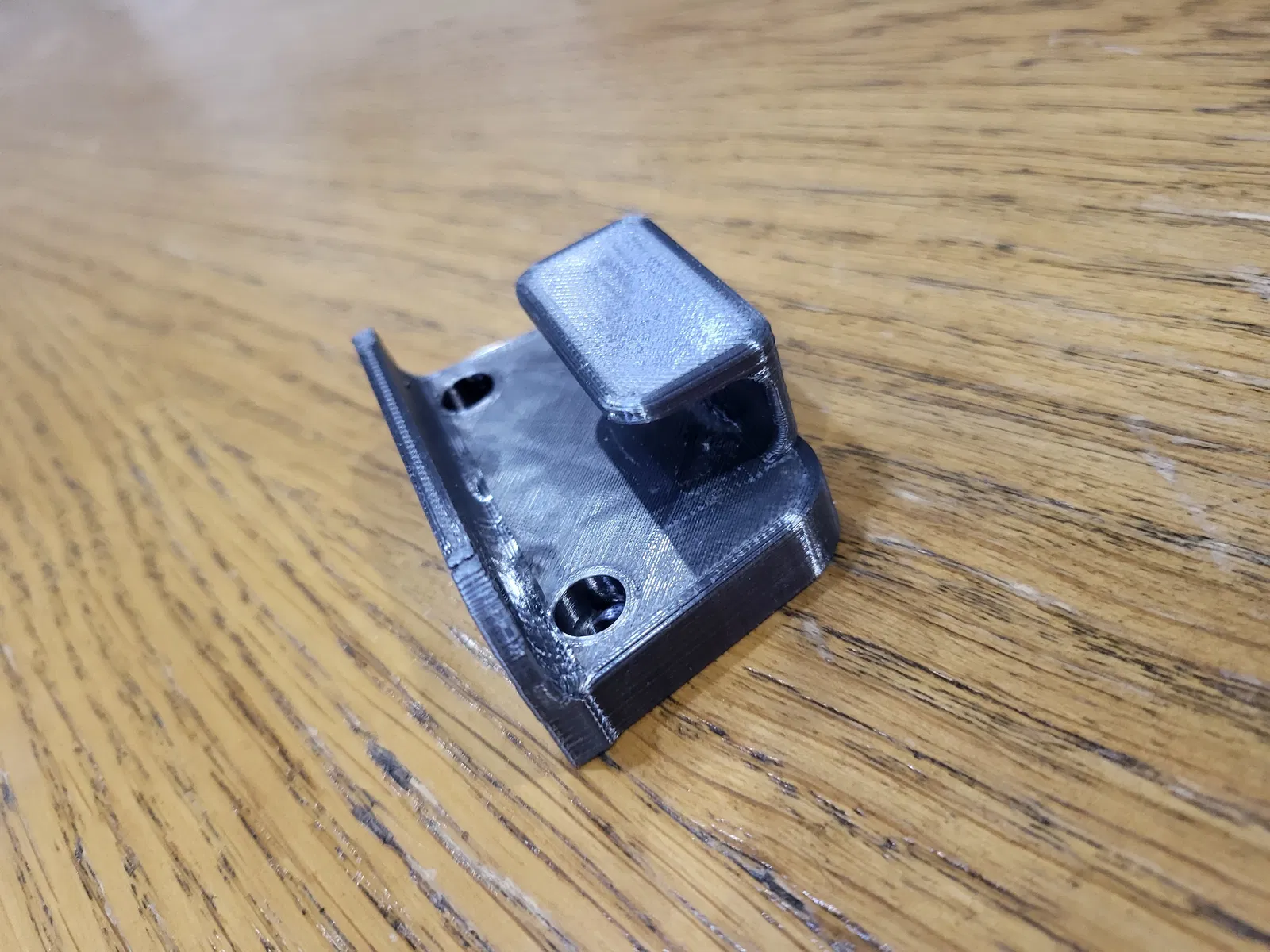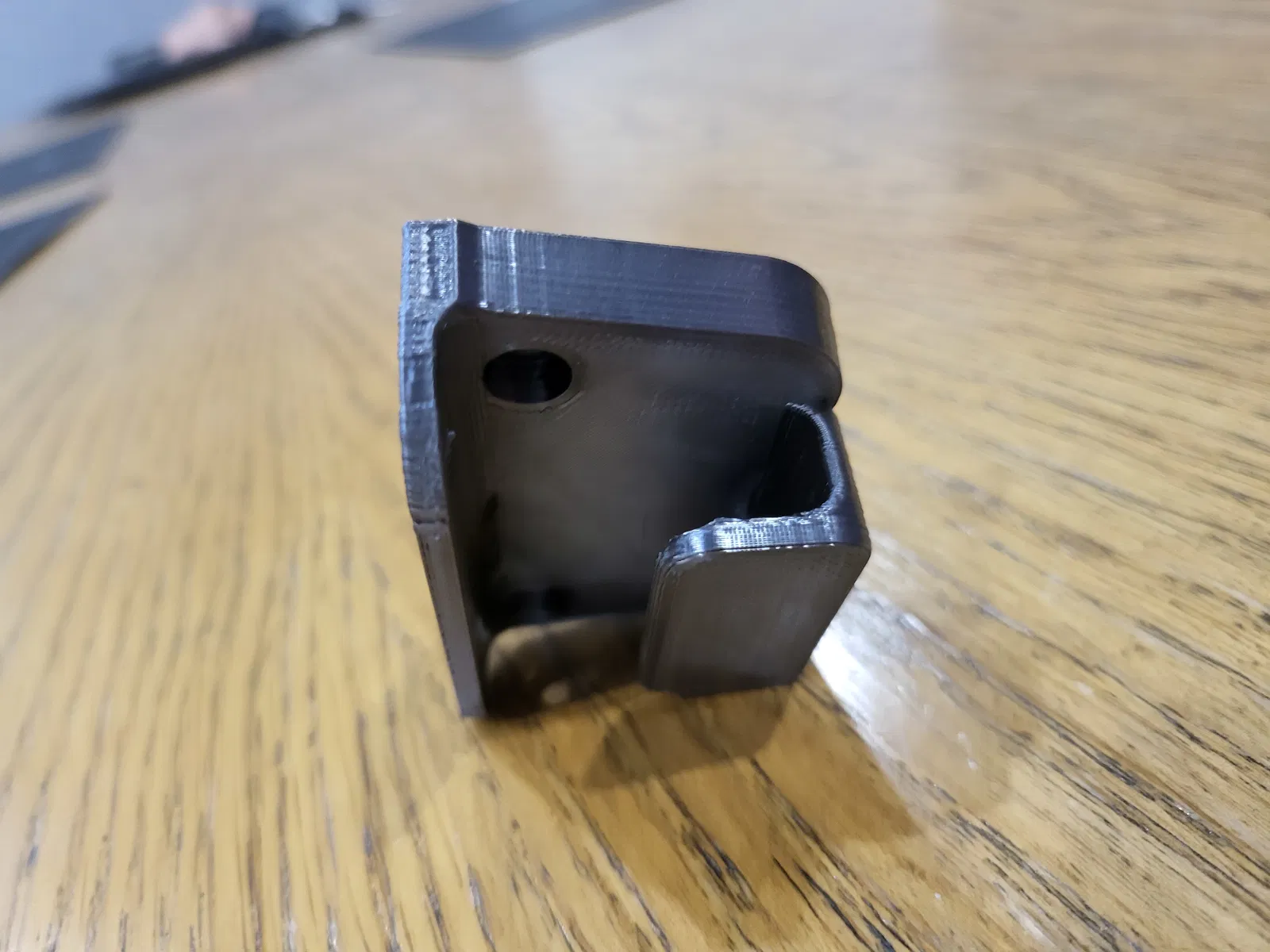 Tôi thích dùng nhiều lớp vỏ (perimeters) hơn là ruột (infill) để tăng độ bền cho bản in. Cá nhân tôi thì gắn mấy cái này vào cạnh ngắn áp sát tường, nên việc có lớp vỏ xung quanh phần khoét lỗ bắt vít sẽ hợp lý hơn, chỉ cần cẩn thận đừng siết ốc quá chặt không là sẽ làm nứt các đường lớp in.