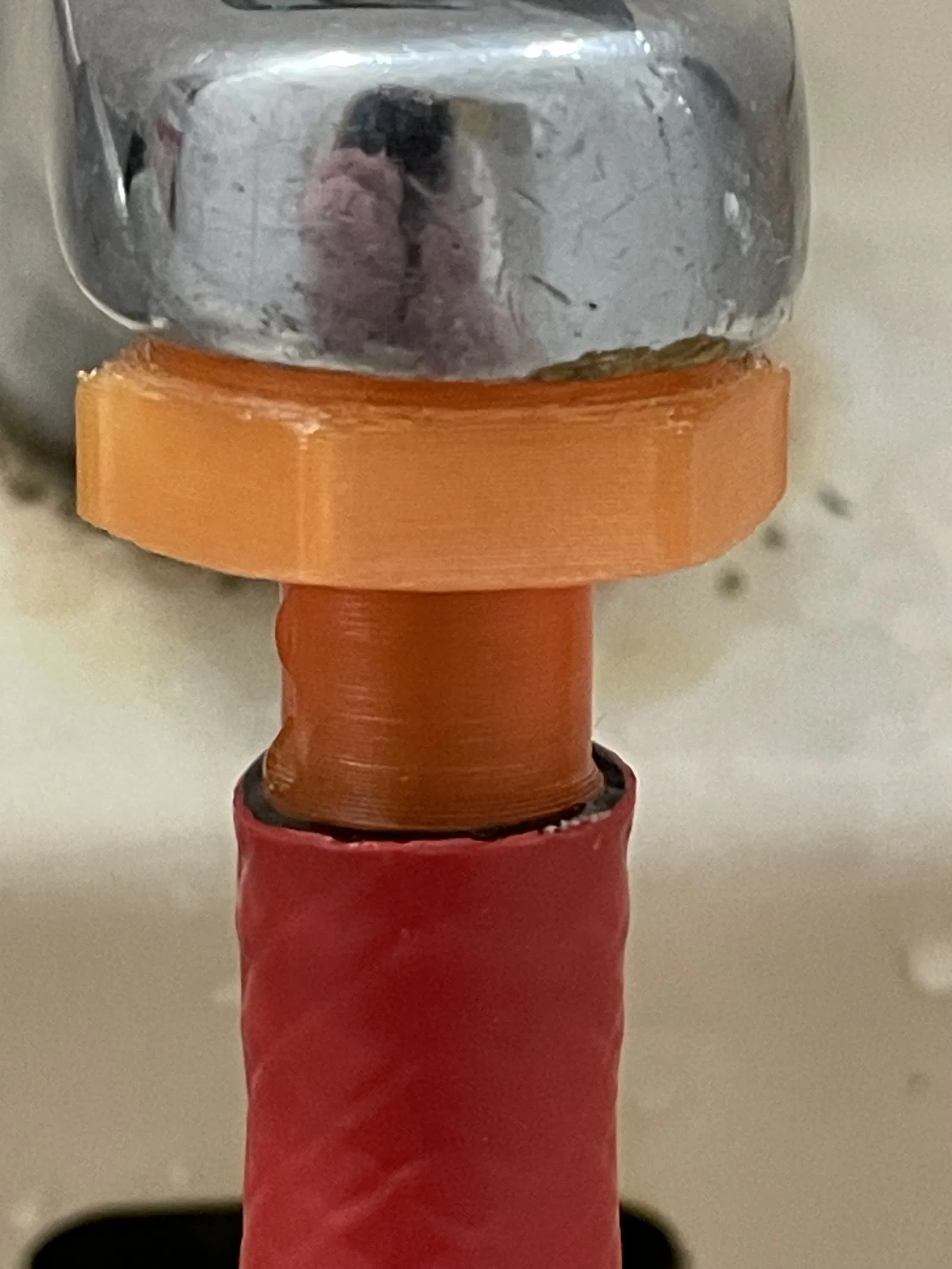 In bằng 4 đường bao, giảm độ dày lớp ở vùng ren xuống 0,1 mm, có lẽ không thực sự cần thiết nhưng đã hoạt động tốt và chịu được vòi nước mở hoàn toàn.