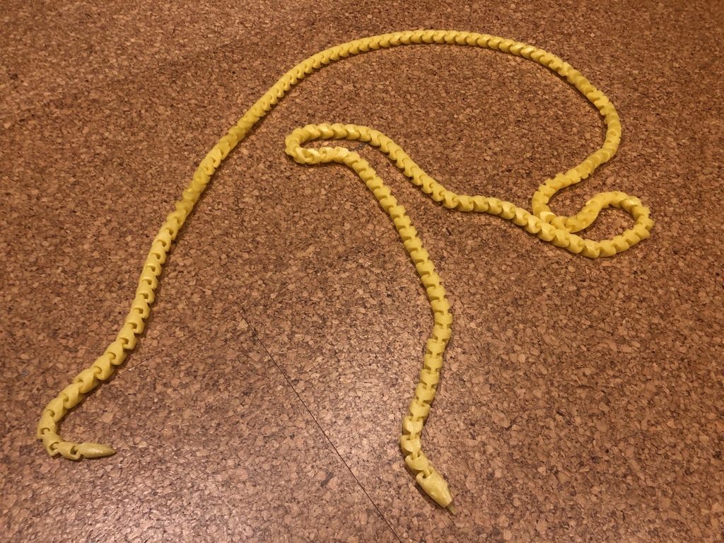 Phiên bản dài hơn của con rắn xxxxl, dài tới 191cm và có đuôi tròn thân thiện với trẻ em. Được tối ưu hóa cho máy in Prusa i3 MK2/3 với khay 250mmx210mm. In không cần Rafts hay Supports, độ phân giải 0.2mm. Thích hợp cho mục Thú cưng.