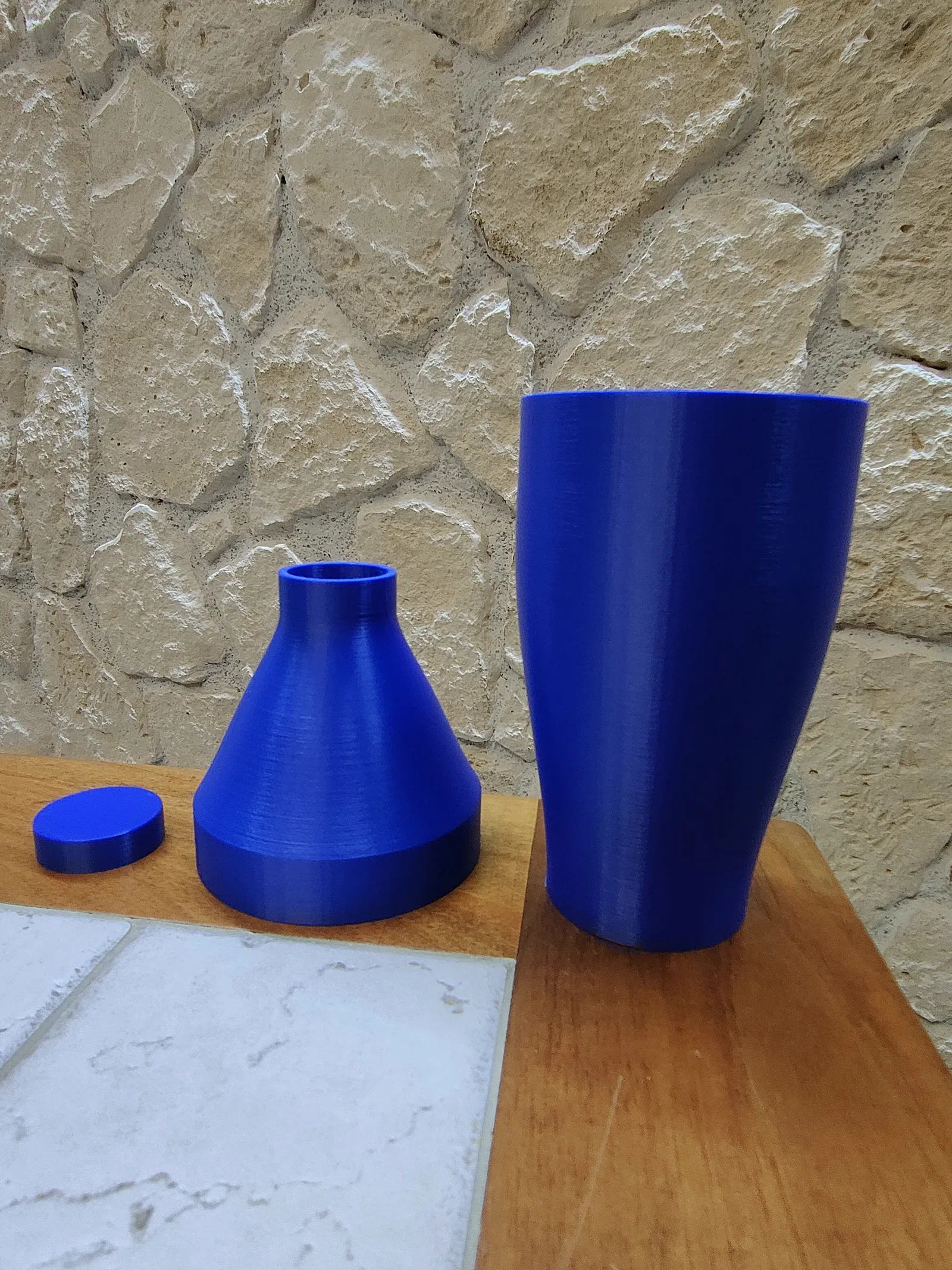 Bình lắc cocktail, thích hợp để pha chế mọi loại đồ uống. Chỉ cần in phần nắp với support, các bộ phận khác không cần support. Độ phân giải 0.20mm, infill 30% với chất liệu PETG.
