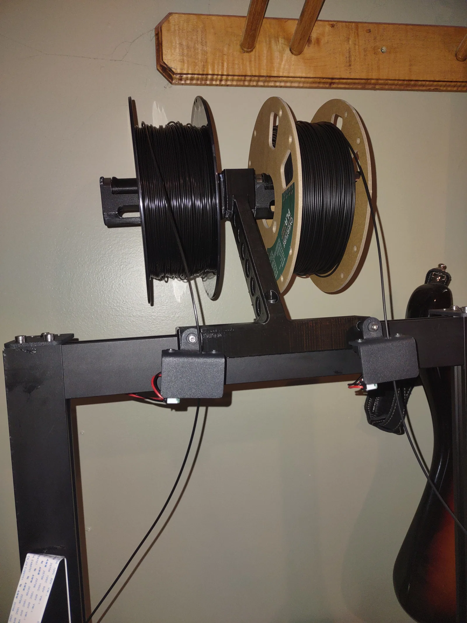 Giá đỡ gắn cuộn dây cho máy in Artist-D IDEX, giúp cấp sợi theo phương vuông góc vào cảm biến và bộ truyền động trực tiếp. Tương thích với giá đỡ sợi của Thingiverse.