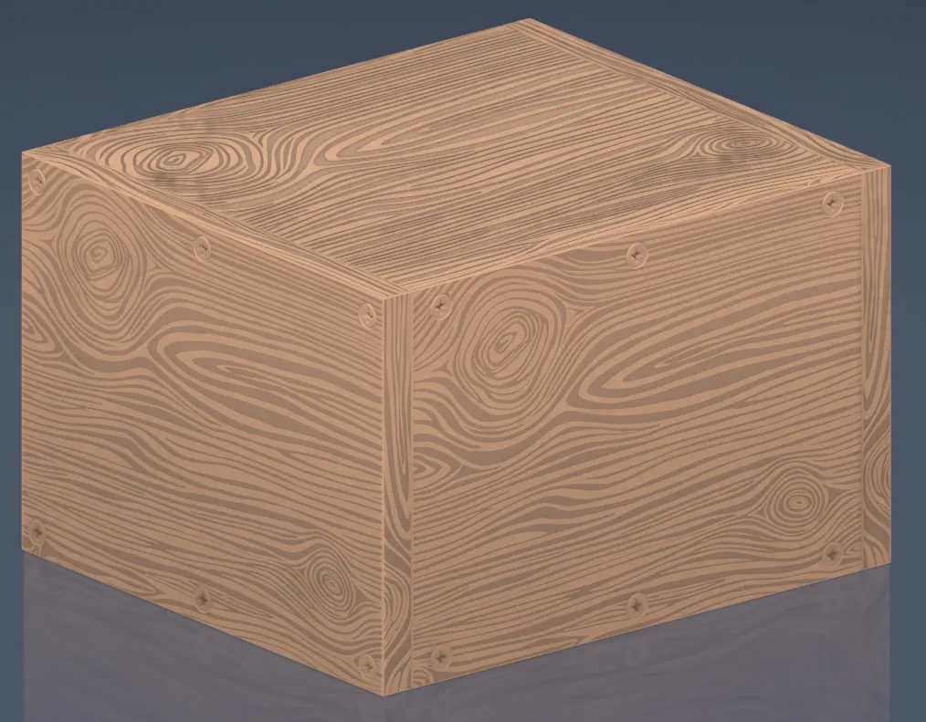 Mô hình thùng lớn với vân gỗ, kích thước 260x230x168mm. Phù hợp làm hộp quà hoặc để đồ. Cần khoảng ¾ cuộn 1KG filament. Hướng dẫn in chi tiết với kỹ thuật bridging. File Step kèm theo để tùy chỉnh.