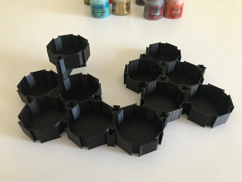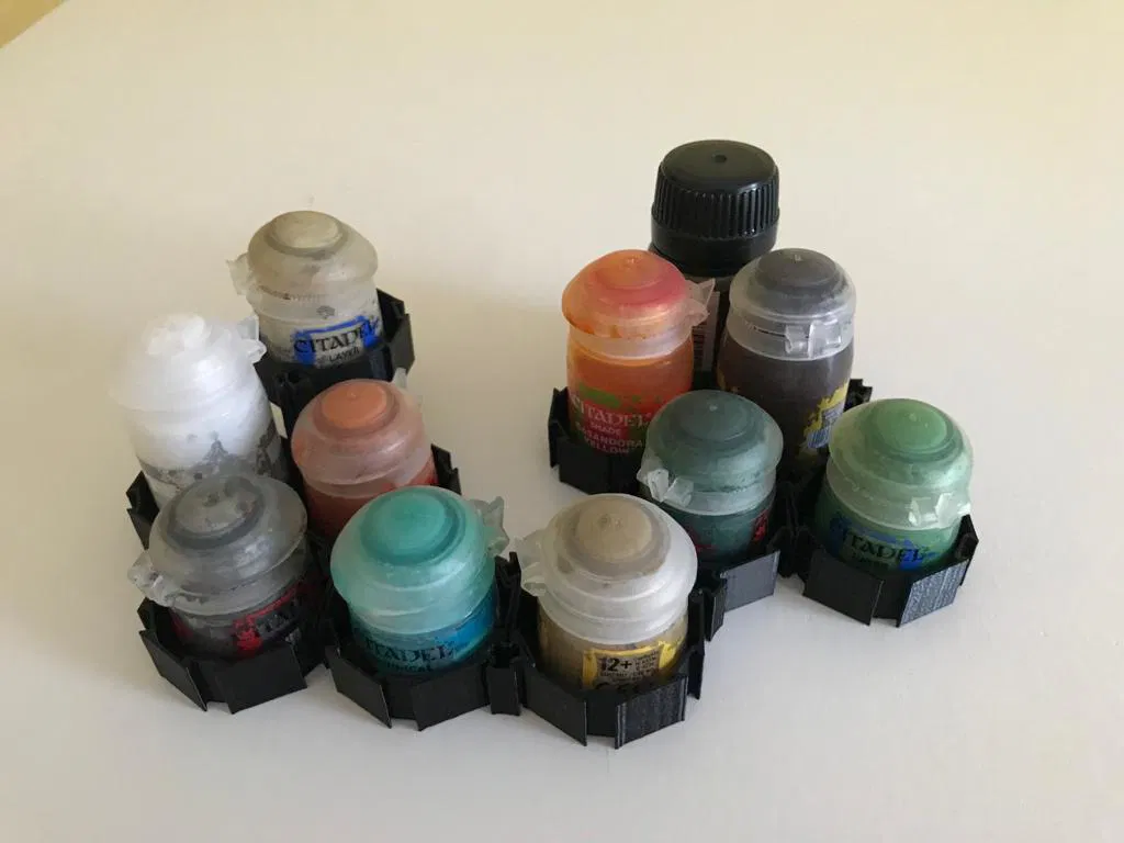 Hệ thống giá đỡ sơn dạng module giúp giữ cho các chai sơn của bạn được gọn gàng. Các ngăn chứa khác nhau được kết nối với nhau bằng hệ thống rãnh.