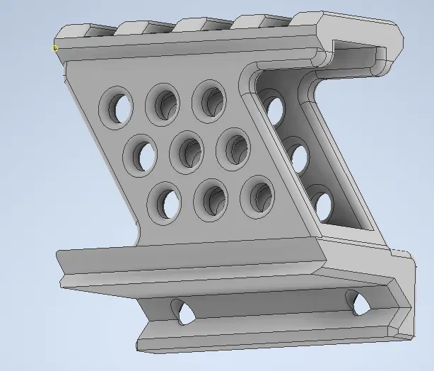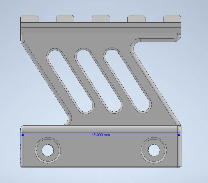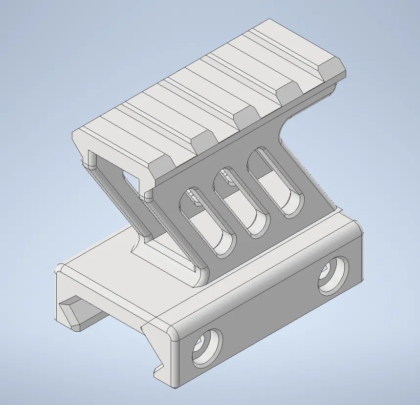 Mô hình đế nâng kính ngắm ray picatinny, có hai loại: đế có lỗ và đế có rãnh. Kích thước chi tiết: dài 45mm, rộng 20.7mm, cao 43mm. Kèm theo 2 ốc vít M3 và đai ốc.