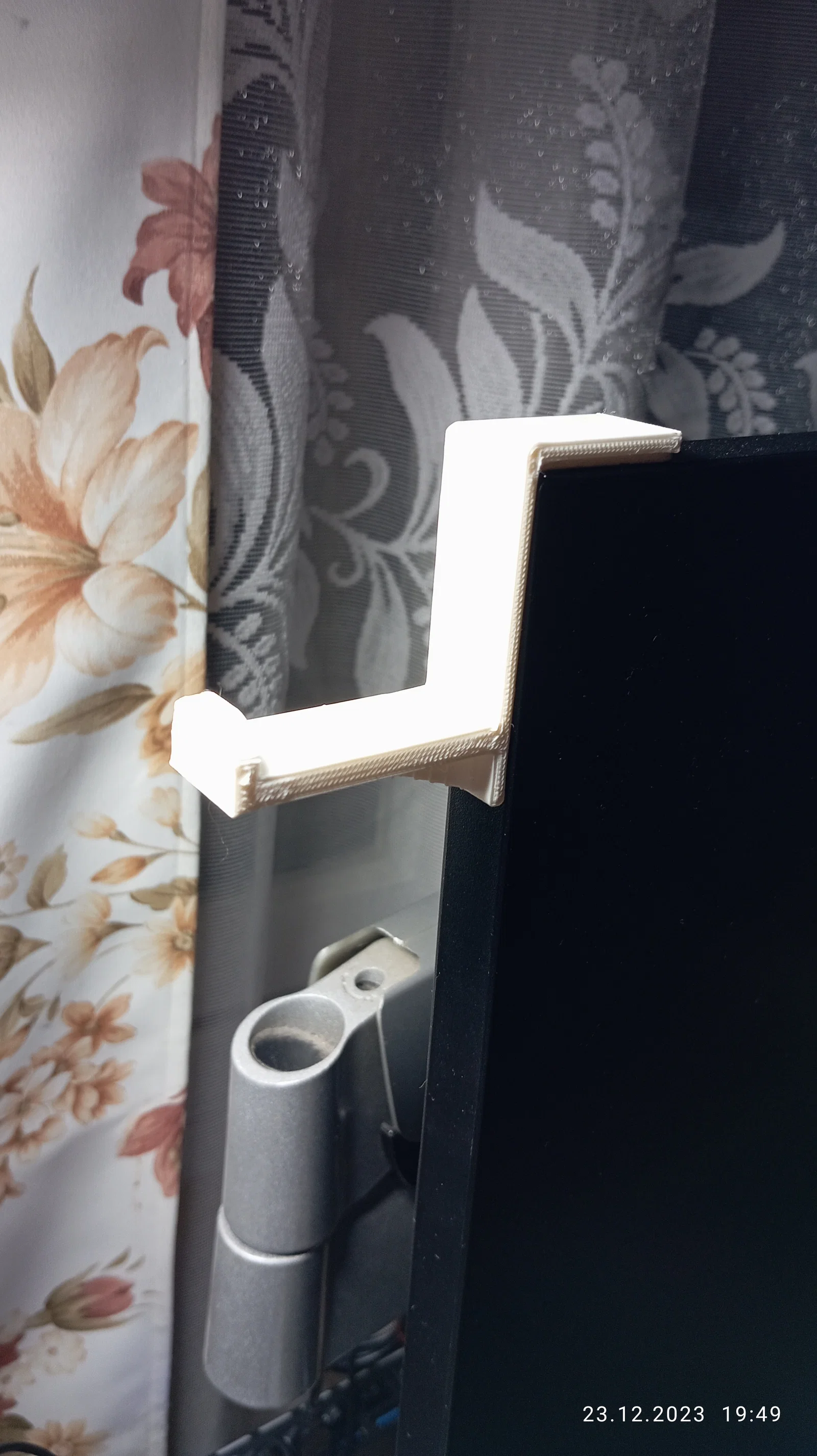 Tôi đã thiết kế giá đỡ tai nghe cho màn hình. Đây là mô hình đầu tiên của tôi, có lẽ nó sẽ cần một số sửa đổi.