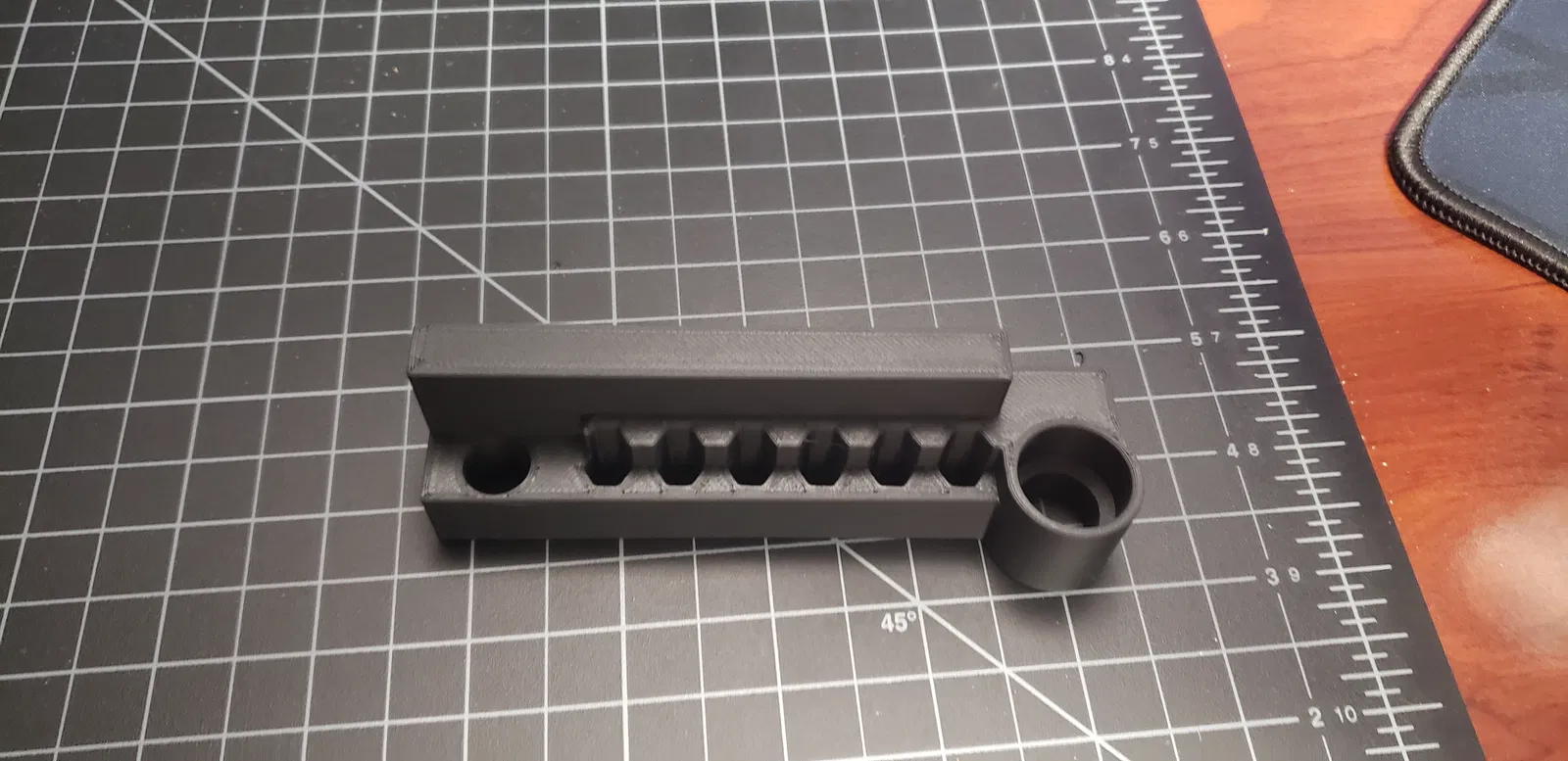 Tui đã tạo cái đế này để giữ sáu cái đầu vít, tay cầm tua vít và cờ lê bánh xe.