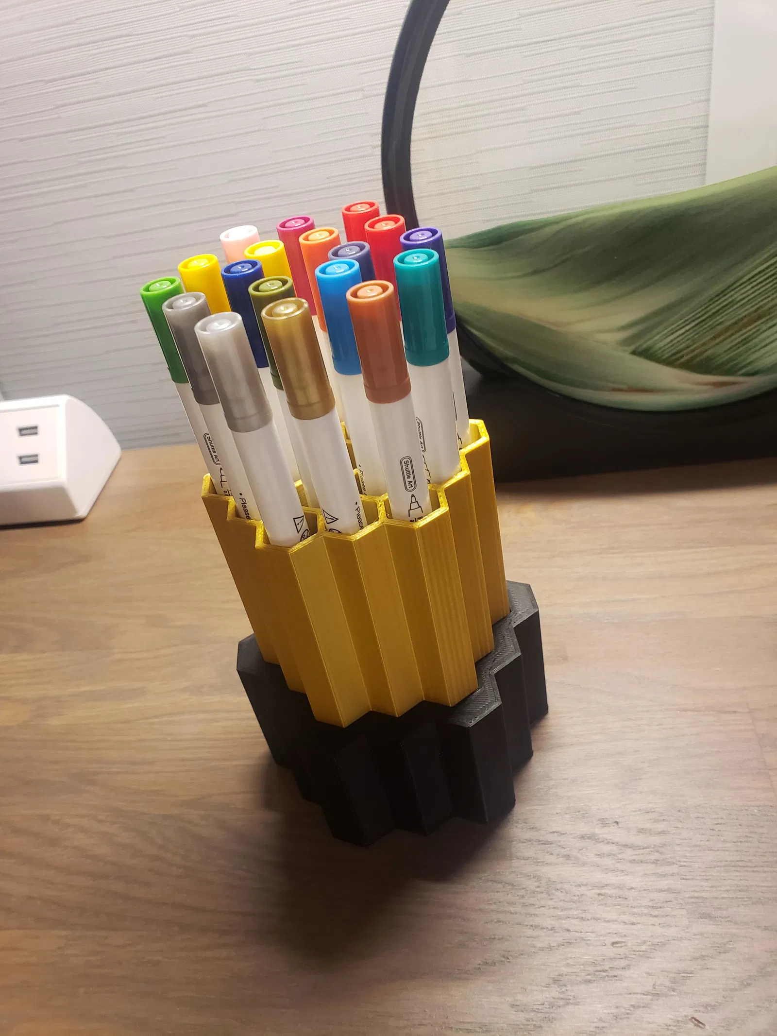 Kệ đựng bút lấy cảm hứng từ Kính viễn vọng Không gian James Webb (JWST). Kích thước cao 135mm với các khe cắm bút 16.55mm x 14.33mm. Đế và phần khe cắm được thiết kế tách rời, lắp ráp khít khao mà không cần xử lý thêm.