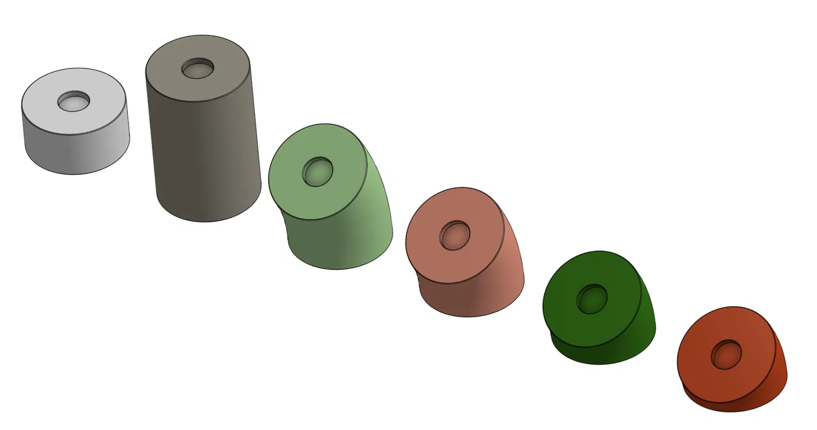 Trong hình ảnh, tôi có một đoạn thẳng dài 1 inch, một đoạn thẳng dài 3 inch và các đoạn cong 30 độ với bán kính 4 inch, 3 inch, 2 inch và 1.5 inch. Đừng ngần ngại liên hệ nếu bạn muốn một phiên bản có đường kính khác hoặc các khớp nối "Y" hoặc "T" đặc biệt. Tôi rất sẵn lòng tạo các phiên bản mới theo yêu cầu của bạn!