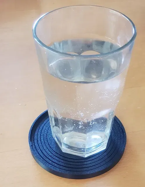 Đây là một nắp cốc/coaster "xây dựng tại chỗ" có thể thu vào. Nó sẽ nằm phẳng khi được sử dụng như một coaster và sẽ thu vào qua vành khi được sử dụng như một nắp cốc. Nó rất tuyệt để giữ cho những con côn trùng phiền phức không bay vào cốc của bạn khi ăn ngoài trời. Nó cũng hoạt động như một đồ chơi quay thú vị.