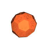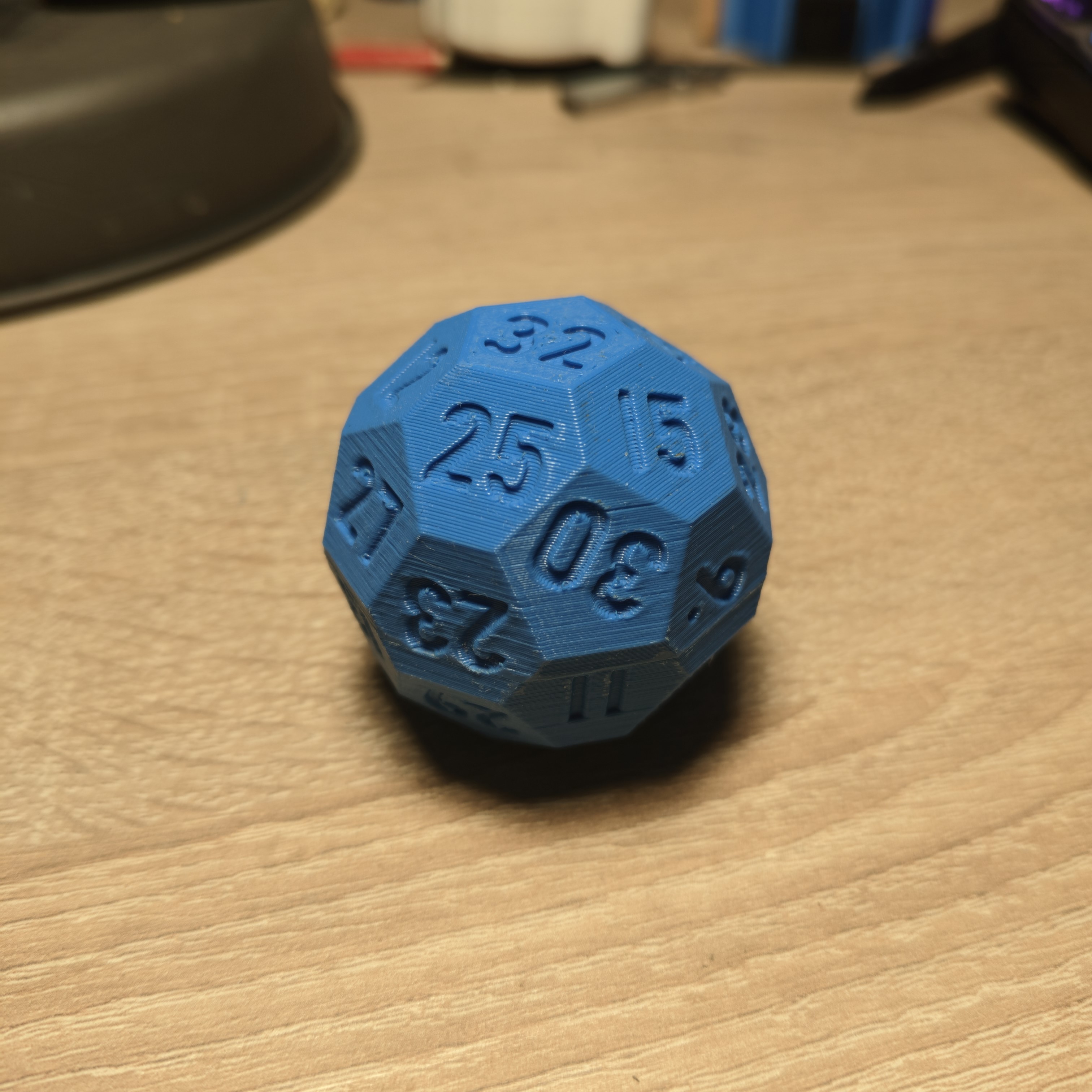 Xúc xắc 32 mặt, vì sao không? Biết là không công bằng lắm vì các mặt có hình dạng khác nhau, nhưng diện tích thì bằng nhau đó. Anh em in 2 nửa rồi dán lại hay in một mảnh đều được, PLA với setting mặc định là ổn áp.