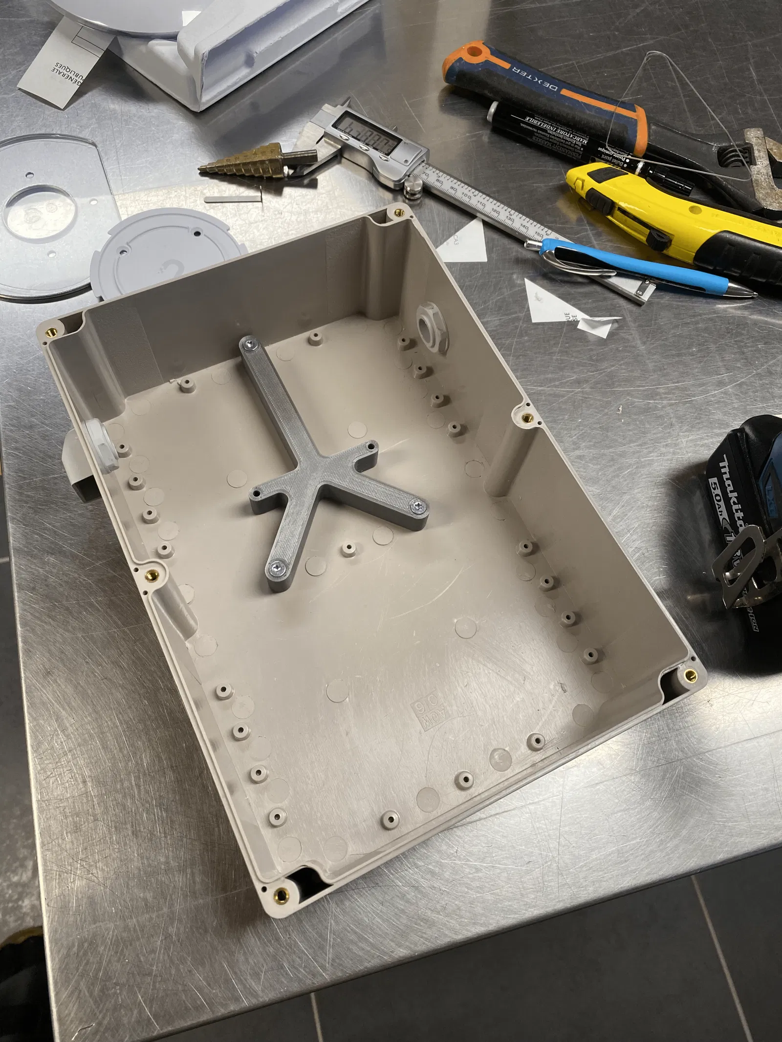 - Gắn giá đỡ đã in vào hộp bằng 3 * ốc vít đầu chìm