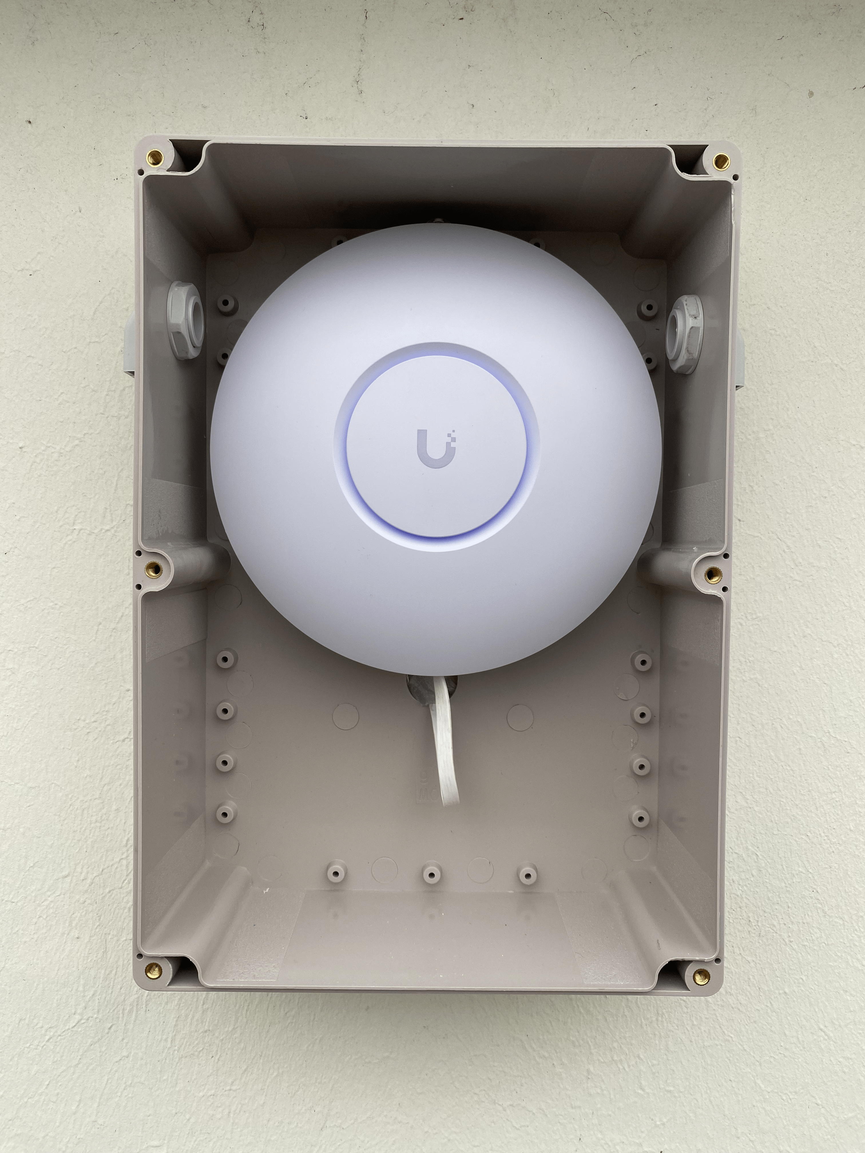 Tôi lấy cảm hứng từ bộ vỏ hoàn hảo nhưng rất đắt tiền này: https://altelix.com/altelix-vented-weatherproof-enclosure-for-ubiquiti-unifi-u6-enterprise-access-point ; vì vậy tôi đã tùy chỉnh một hộp điện nối đất ngoài trời đạt chuẩn IP65, nó hoạt động hoàn hảo.