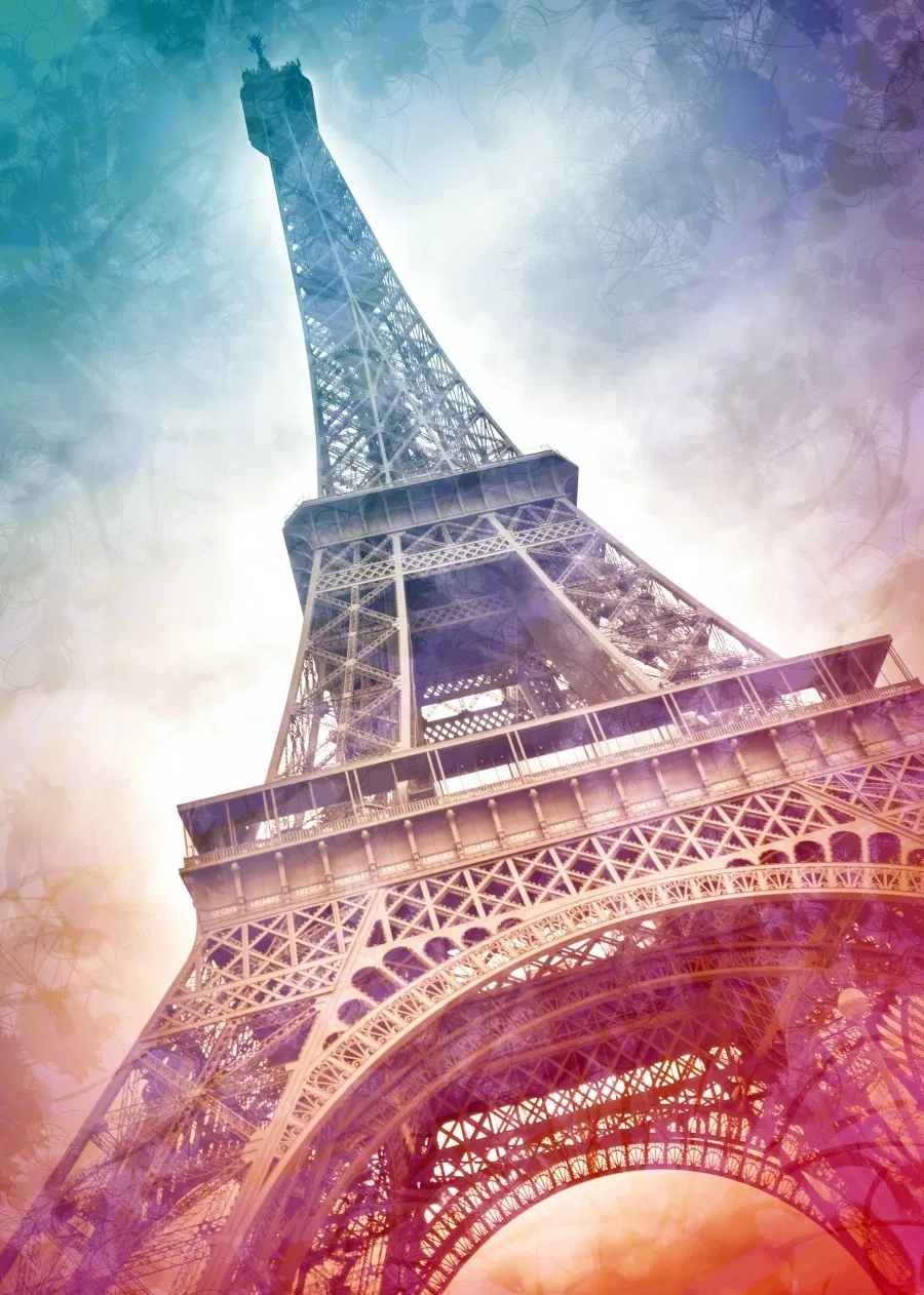 Mô hình Tháp Eiffel Hueforge, không cần AMS, chỉ cần đổi dây tóc thủ công. In với infill 100%, độ cao lớp 0.08mm. Hướng dẫn đổi màu chi tiết cho từng lớp filament PETG JAYO Black, PLA BambuLab Basic Blue, PLA+ IIID Max Fuchsia, PLA+ IIID Max Pink, PETG JAYO White.