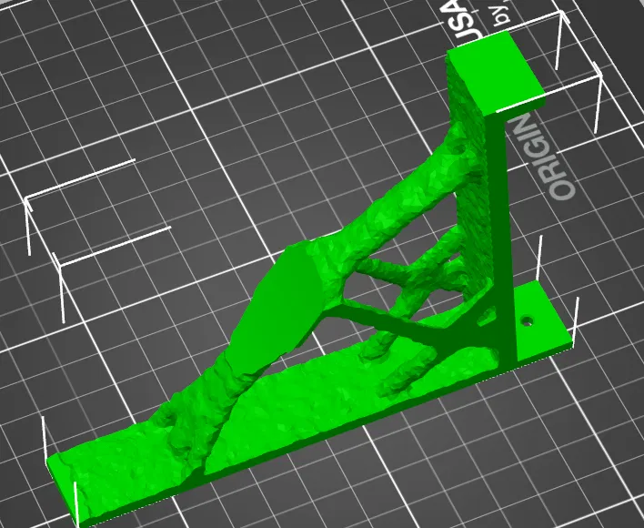 Giá treo sound bar. Không cần kệ. Chỉ cần hai miếng đặt đúng chỗ là đủ. Tốn ít vật liệu mà lại rất cứng cáp. Mỗi cái chỉ cần một con vít neo tường. Hơi nghiêng để hướng âm thanh về phía khu vực làm việc. Nhìn mộc mạc. In bằng PETG hoặc PLA, độ cao lớp in 0.3 mm, 2-3 lớp ngoài, cần support cho phần tai phía trên.