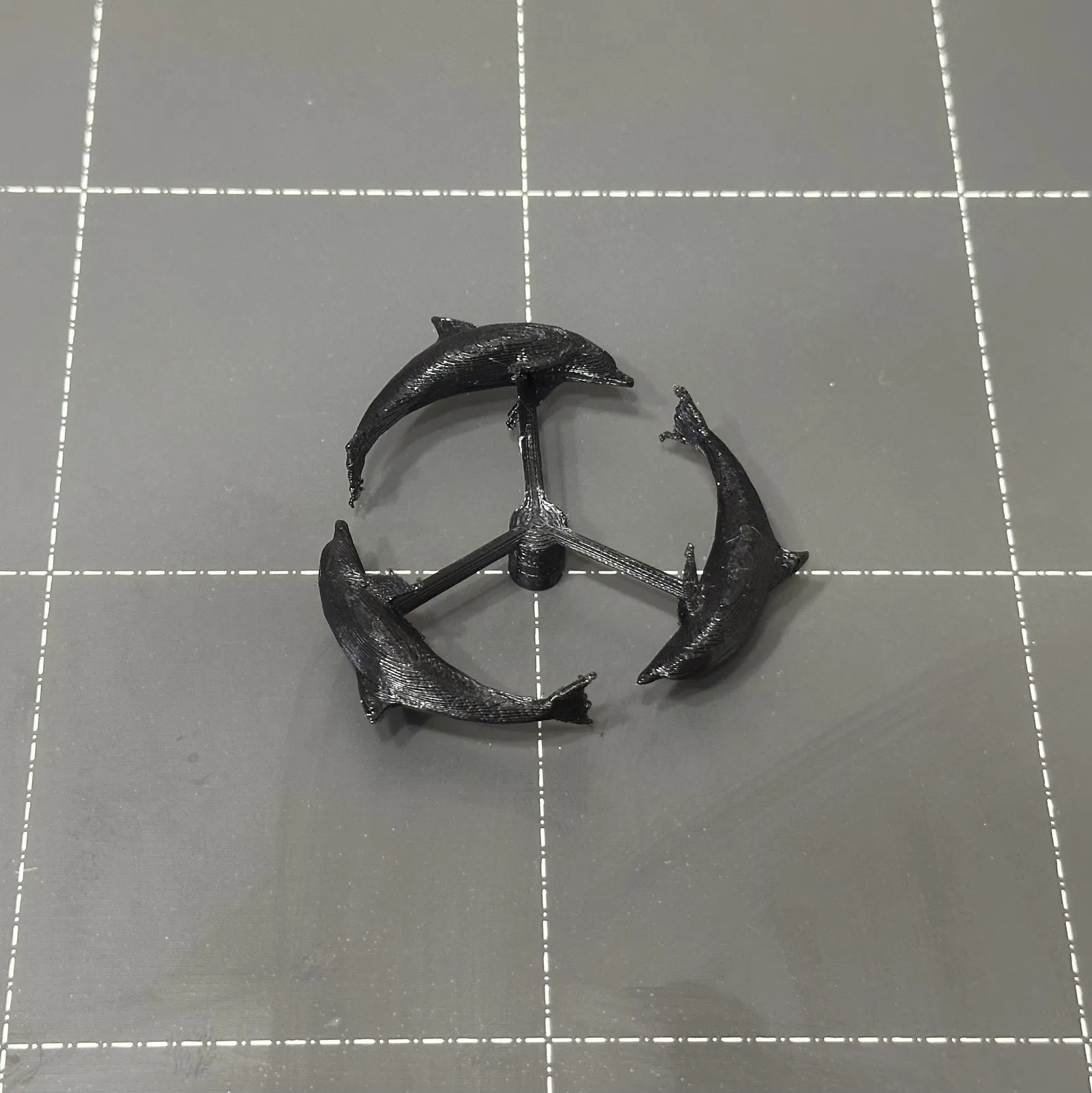 Để có kết quả tốt nhất, hãy cắt mô hình thành hai phần ở độ cao Z = 12,1 mm (các con cá heo nên được cắt đôi đối xứng), in từng phần riêng biệt ở chế độ chất lượng cao (tôi đã sử dụng chiều cao lớp 0,15 mm), sau đó dán hai mảnh lại với nhau. Tệp gcode đi kèm có cấu hình này cho Prusa i3 MK3S/MK3S+.