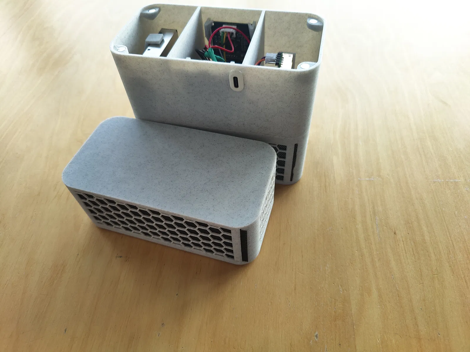 Đây là phiên bản cảm biến chất lượng không khí cá nhân của tôi, được chế tạo từ bo mạch ESP32, cảm biến SEN55, MH-Z19 và màn hình SSD1327. Mô hình này bao gồm các bộ phận in 3D bằng PLA và TPU, cùng với các linh kiện phi in như nam châm, ốc vít và ổ cắm USB-C. Hướng dẫn lắp ráp chi tiết và các ghi chú về cách xử lý các bộ phận và vật liệu được cung cấp.