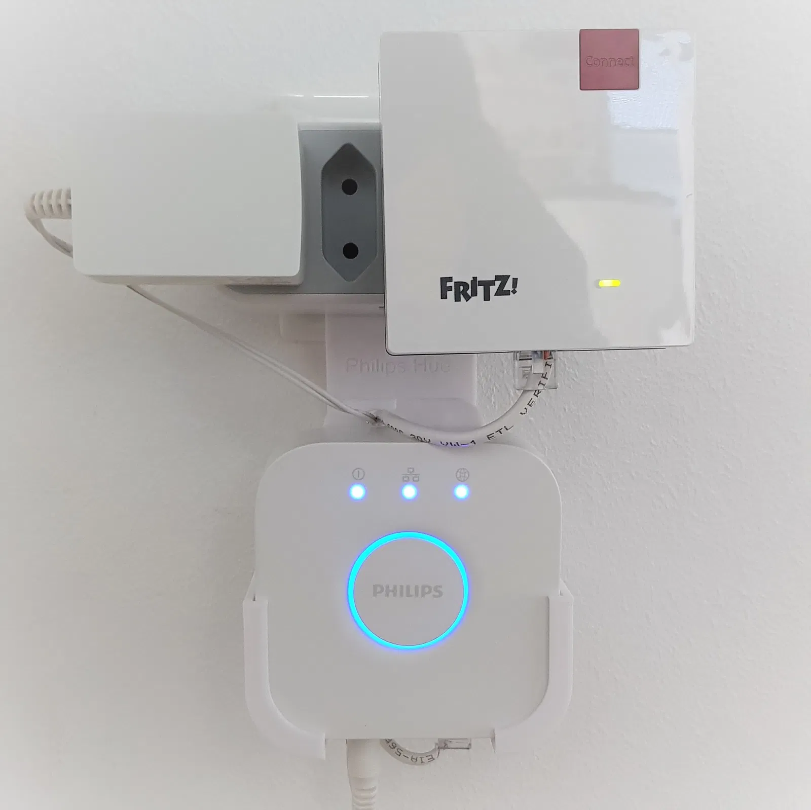 Với cái đế giữ "Huii - The Bridgeholder" này, bạn có thể kết hợp cái Hue Bridge của Philips với ổ cắm đa năng lại với nhau một cách gọn gàng. Như vậy là bạn có thể cất giữ bộ lặp tín hiệu (có cổng LAN) và phích cắm của Hue, cùng với dây nhợ một cách ngăn nắp.