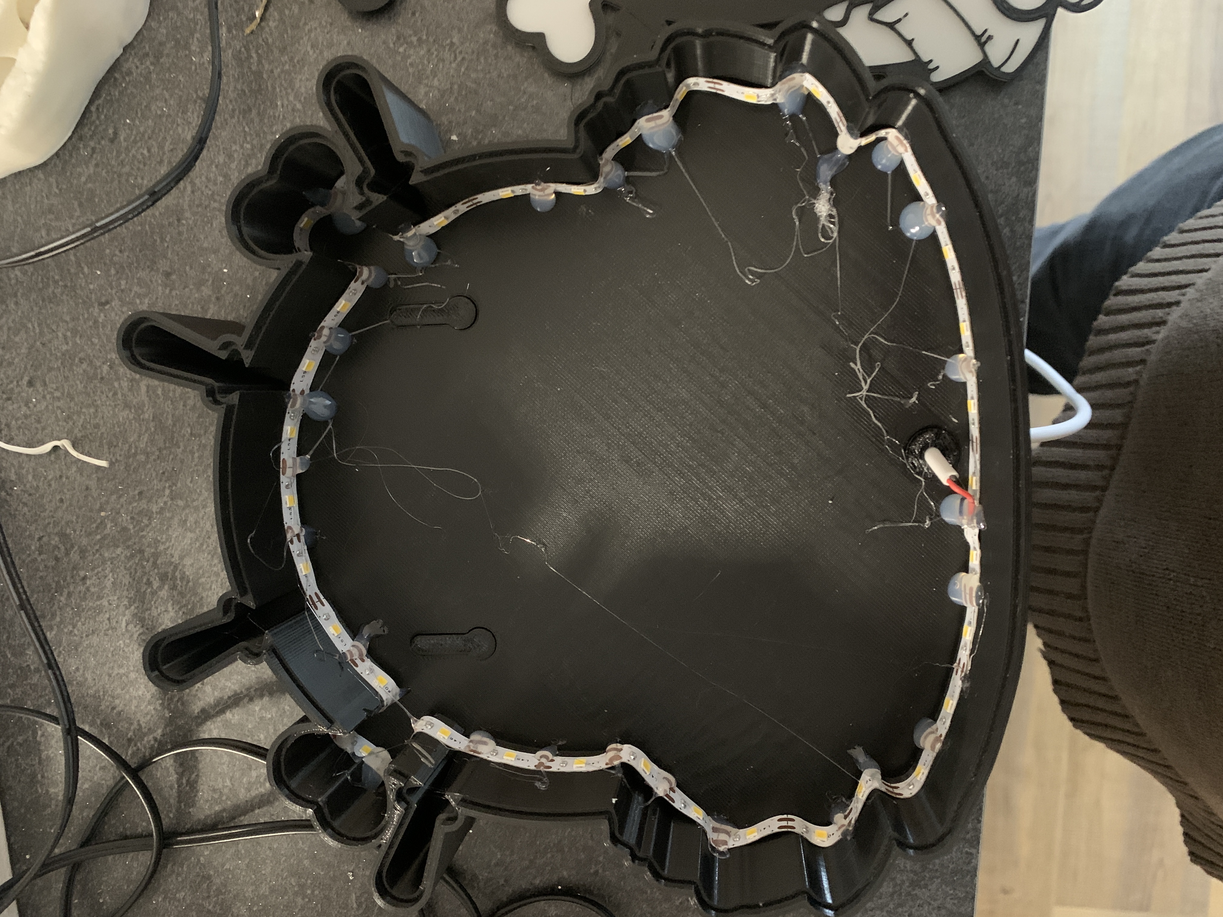 Để chiếu sáng, tôi dùng một dải đèn LED mà tôi gia cố độ bám bằng súng bắn keo.