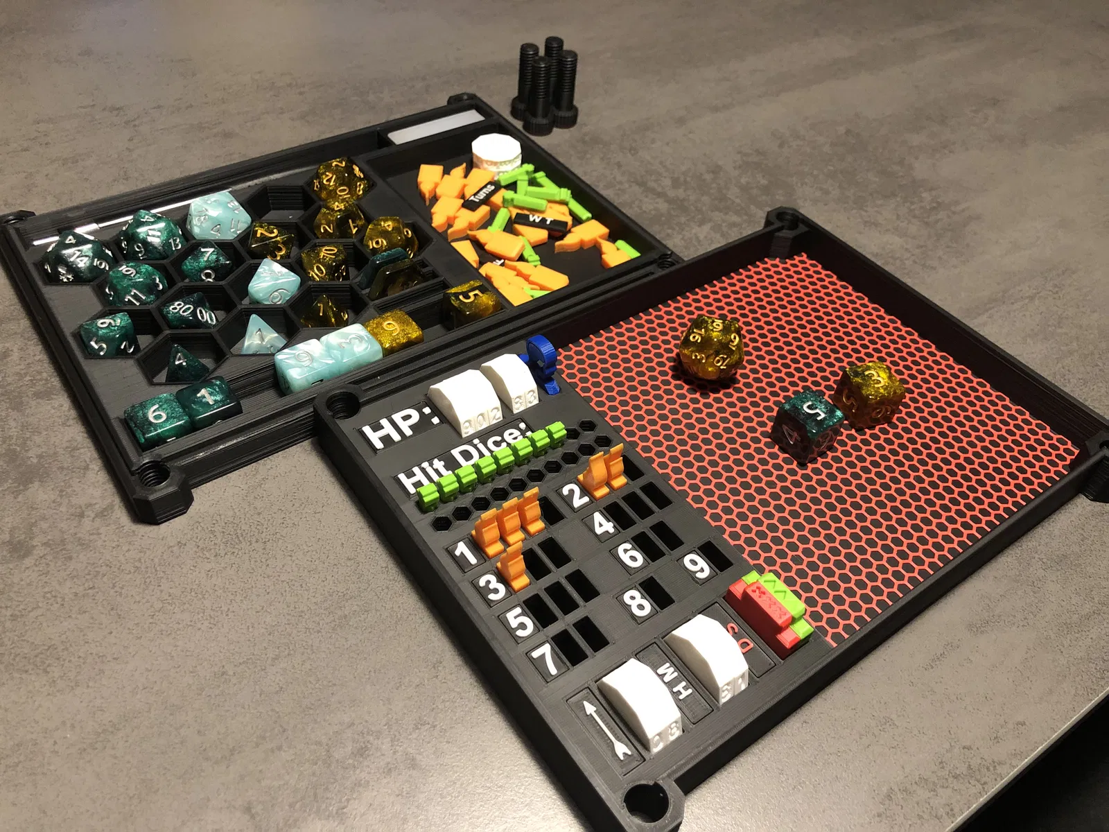 Một chiếc hộp DnD đẹp để đựng xúc xắc, bút chì và cục tẩy của bạn. Hơn nữa, để theo dõi các ô phép thuật, xúc xắc máu và nhiều hơn nữa! Hộp đựng xúc xắc được in 3D hoàn toàn, không cần hỗ trợ.