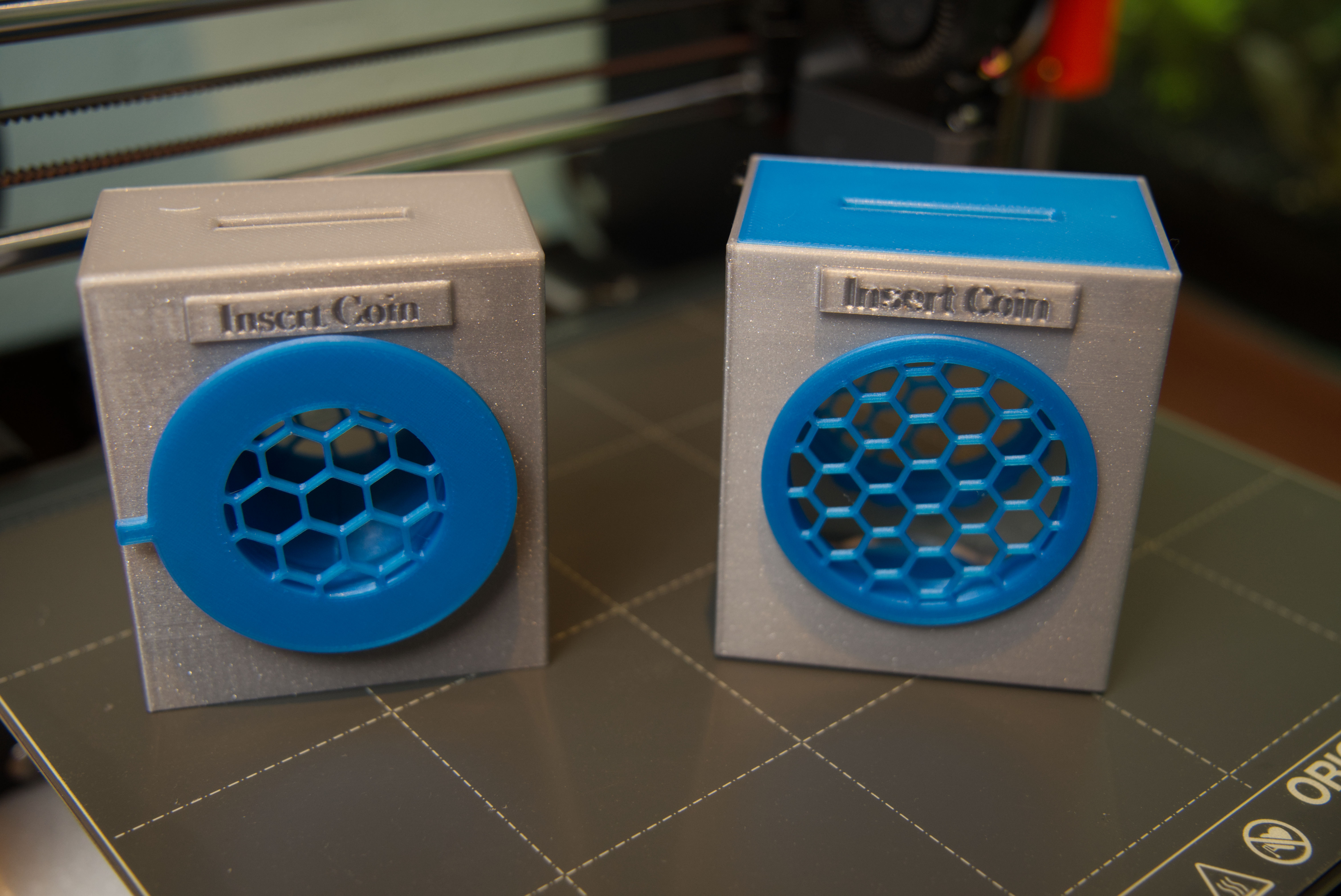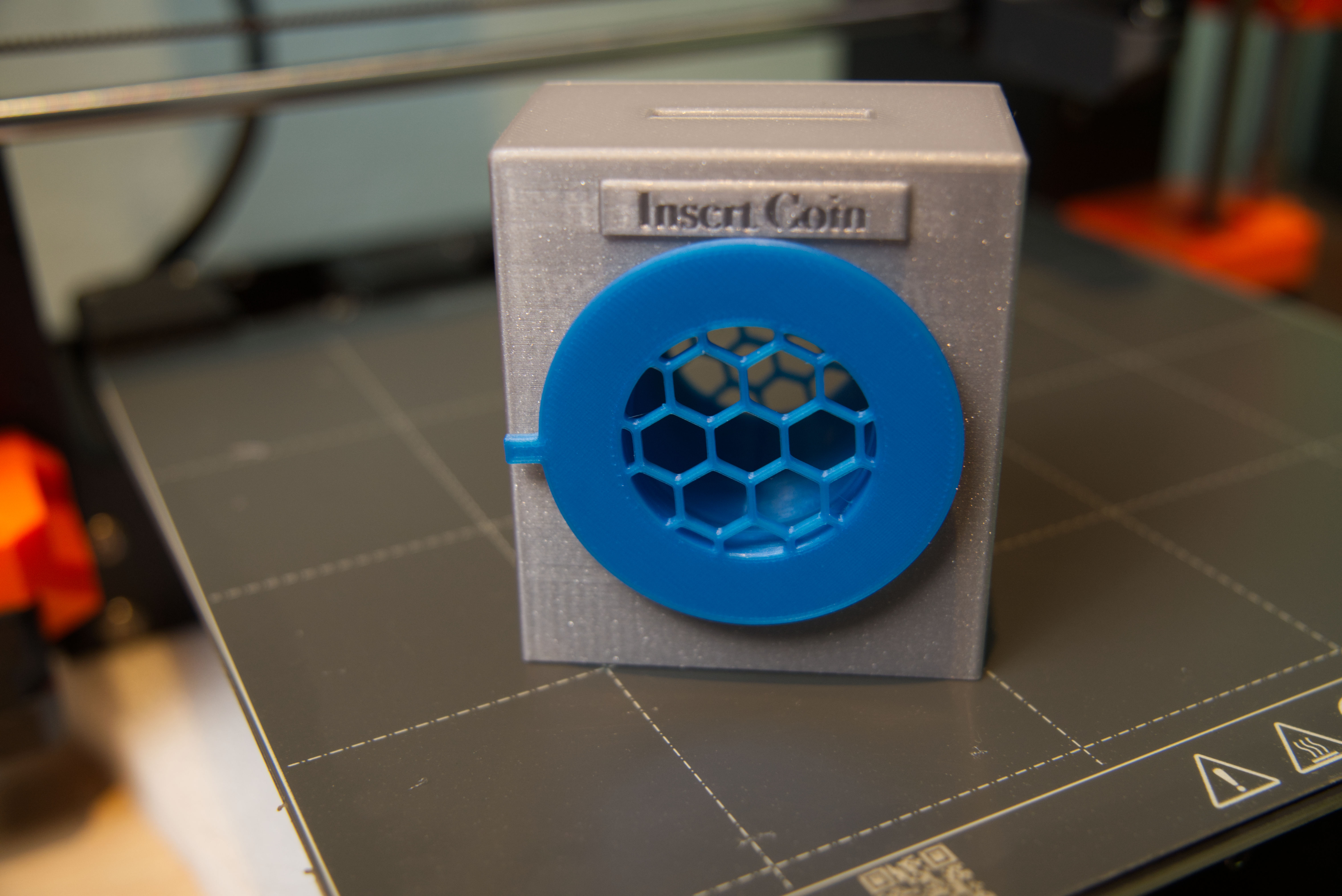 Phiên bản đơn giản chỉ là một cái hộp có khe phía trên và ốc vít ở đáy. Nó đơn giản, dễ in, dễ lắp ráp và có dung tích lớn.