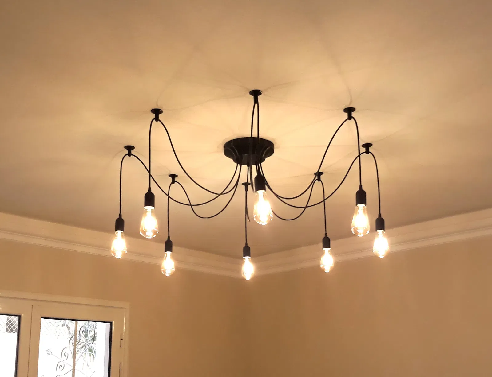Phần dây đèn nên được gắn vào trần nhà bằng các khe và có thể dùng dây có chiều dài bằng nhau hoặc khác nhau để tạo cảm giác tự nhiên hơn. Phần gắn dây sẽ được cố định vào bộ phận cố định bằng vít lục giác 4 mm cần được ren vào bộ phận cố định.