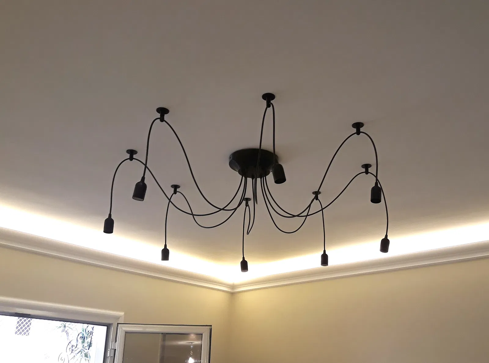 Phần dây đèn nên được gắn vào trần nhà bằng các khe và có thể dùng dây có chiều dài bằng nhau hoặc khác nhau. Bộ phận gắn dây sẽ cố định bằng vít lục giác 4 mm vào bộ phận cố định, việc đi dây rất dễ dàng và thẳng thắn.