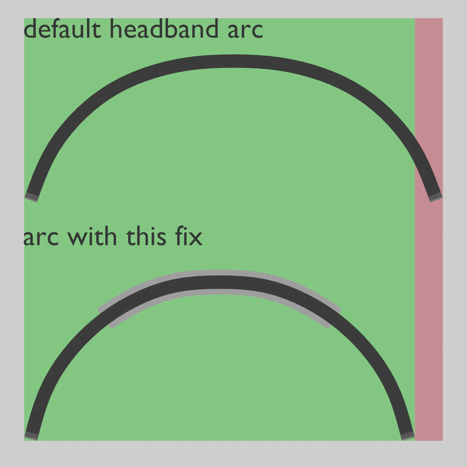 Tui bực mình vụ cái tai nghe cứ rớt xuống hoài khi mà tui cúi đầu tới trước, nên tui mới thiết kế cái cục fix nhỏ nhỏ này nè. Cơ bản là, nó làm giảm bán kính của cái headband một chút, nhờ vậy mà nó siết chặt hơn. Có cái này rồi thì muốn cúi xuống cũng không sợ rớt nữa, thậm chí còn có thể "headbang" nhẹ nhàng mà không lo em nó bay mất nè