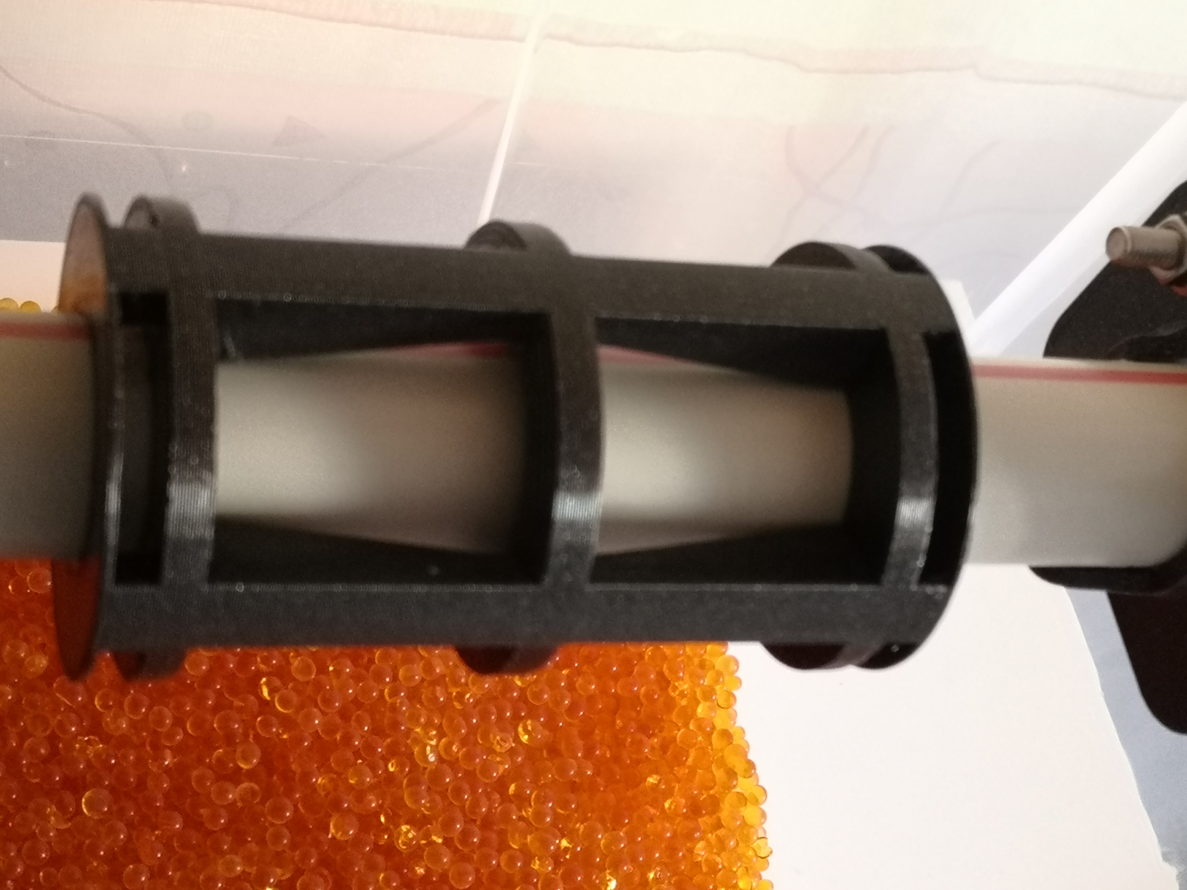 Một nâng cấp tuyệt vời cho hộp sấy filament "IKEA" tự chế của bạn. Vòng bi tạm thời này chỉ đơn giản là định tâm con lăn trên trục chính trong hộp, được làm bằng ống PVC 1/4 (25mm). Việc dàn trải tải trọng giúp kéo sợi filament ra khỏi bộ đùn của máy in mượt mà hơn nhiều.