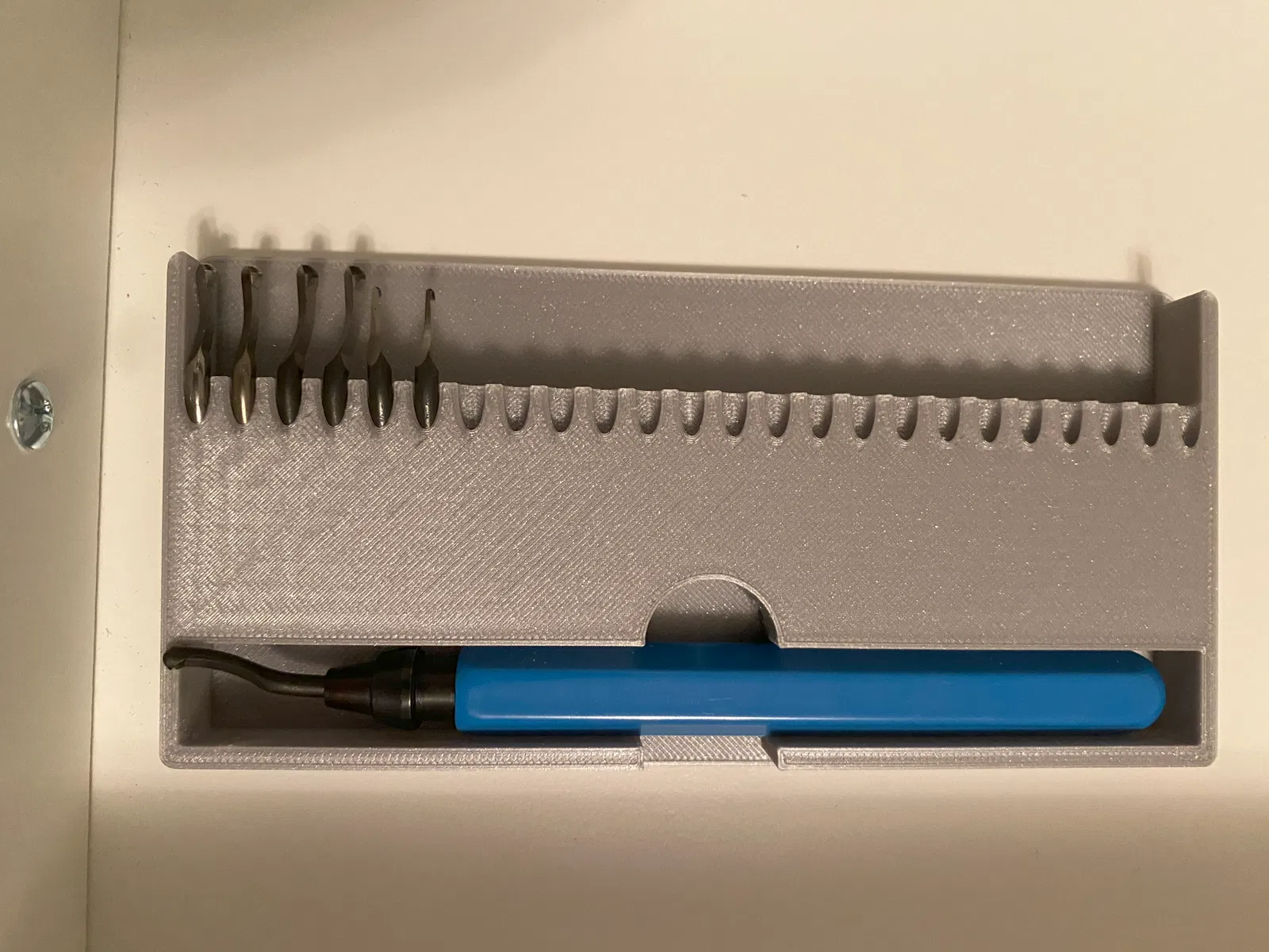 Tụi mình ai cũng thích mấy cái dụng cụ vạt cạnh này ha. Không có cái nào khác làm việc hiệu quả như nó hết, nên cho cái dụng cụ vạt cạnh của bạn một chỗ ở thiệt là ngon với cái organizer đơn giản này đi. Chứa được cán vạt cạnh và 24 lưỡi thay thế đó.